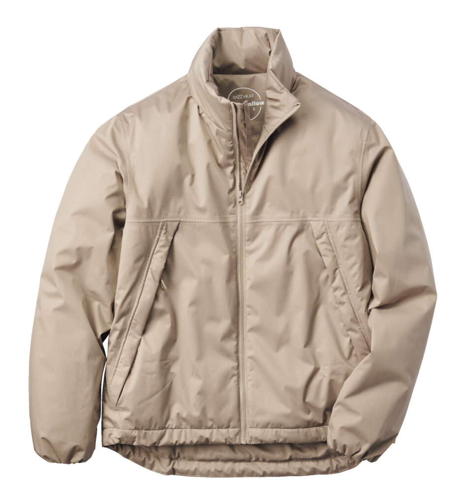 新商品の「BAZZ HEAT STRETCH マシュマロレイン」シリーズは、表地・裏地を特殊のソフトタッチ加工で、まるでマシュマロに包まれているような着心地を実現したレインウェア。4種のトップスを展開し、シーンに合わせて屋内でも着用できます。