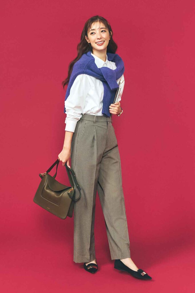 パンツ¥12,980(オリヒカ/オリヒカ池袋東口店)シャツ¥16,500〈MACPHEE〉バッグ¥137,500〈WANDLER〉(ともにTOMORROWLAND)カーディガン¥44,000(スローン/ザ ショップ スローン 新静岡セノバ店)シューズ¥115,500(セルジオ ロッシ/セルジオ ロッシ カスタマーサービス)カチューシャ¥28,600(アレクサンドル ドゥ パリ/アレクサンドル ドゥ パリ GINZA SIX店)時計¥22,990(クルース/HIROBルミネ新宿店)
