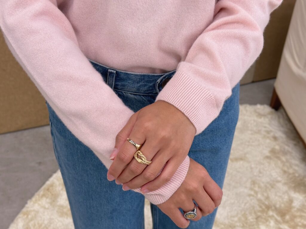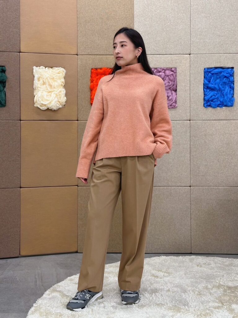 エクストラファインメリノクルーネックセーター(長袖)¥2,990[Mサイズ着用]プレミアムラムクルーネックセーター(長袖)¥2,990[Mサイズ着用]スフレヤーンハイネックセーター(長袖)[12 PINK]¥2,990[Mサイズ着用]3Dカシミヤクルーネックセーター(長袖)[10 PINK]¥9,990[Mサイズ着用](すべてユニクロ)