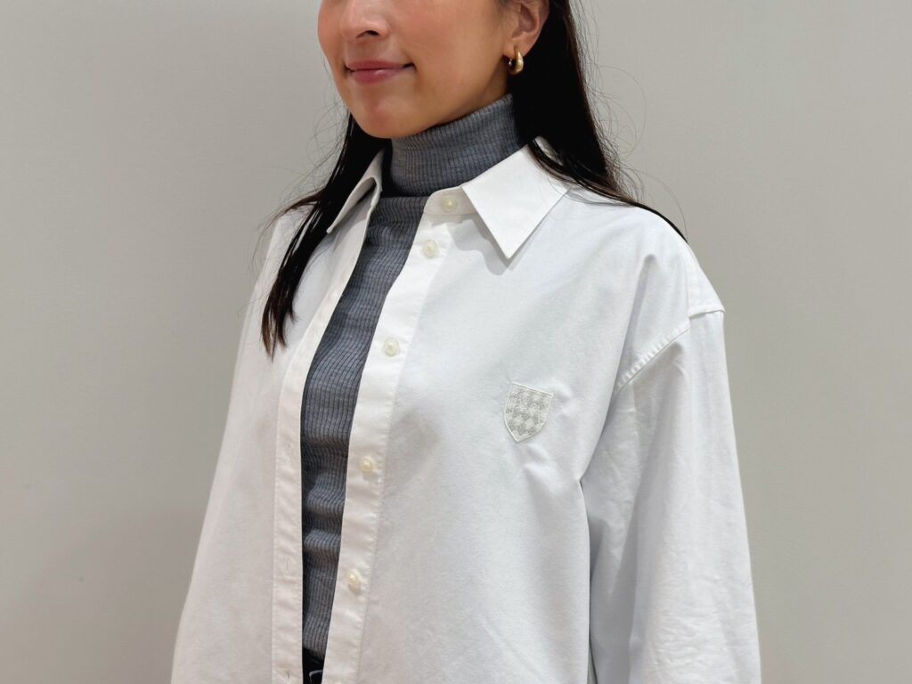 カラーごとにデザインの異なる胸元のワッペン。同系色なので悪目立ちせず、シンプルコーデにほんのりエッセンスを加えてくれます。