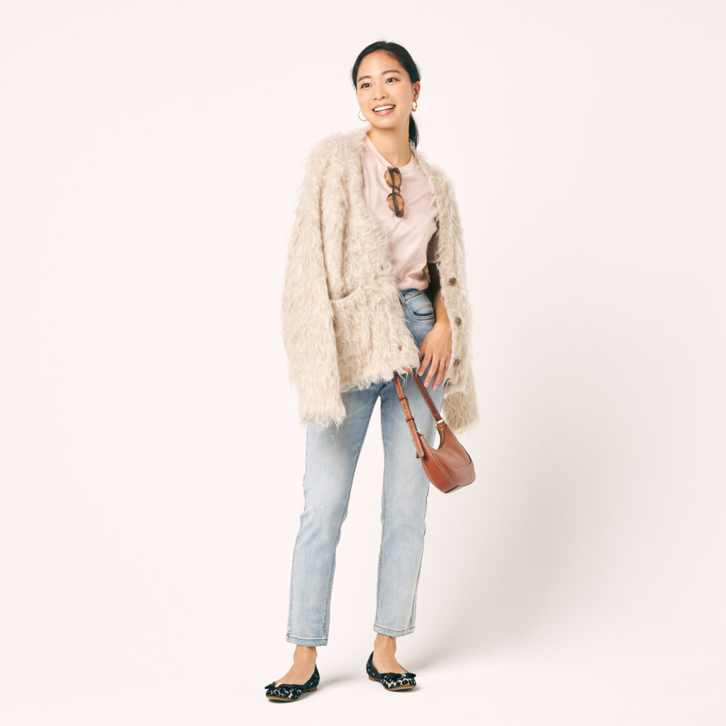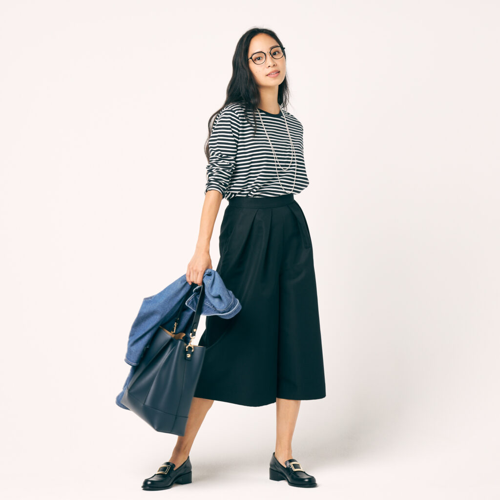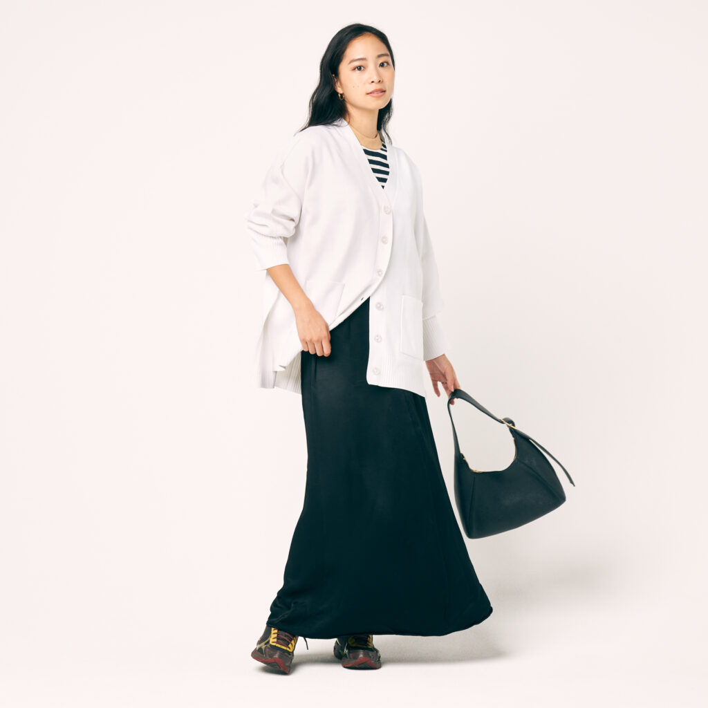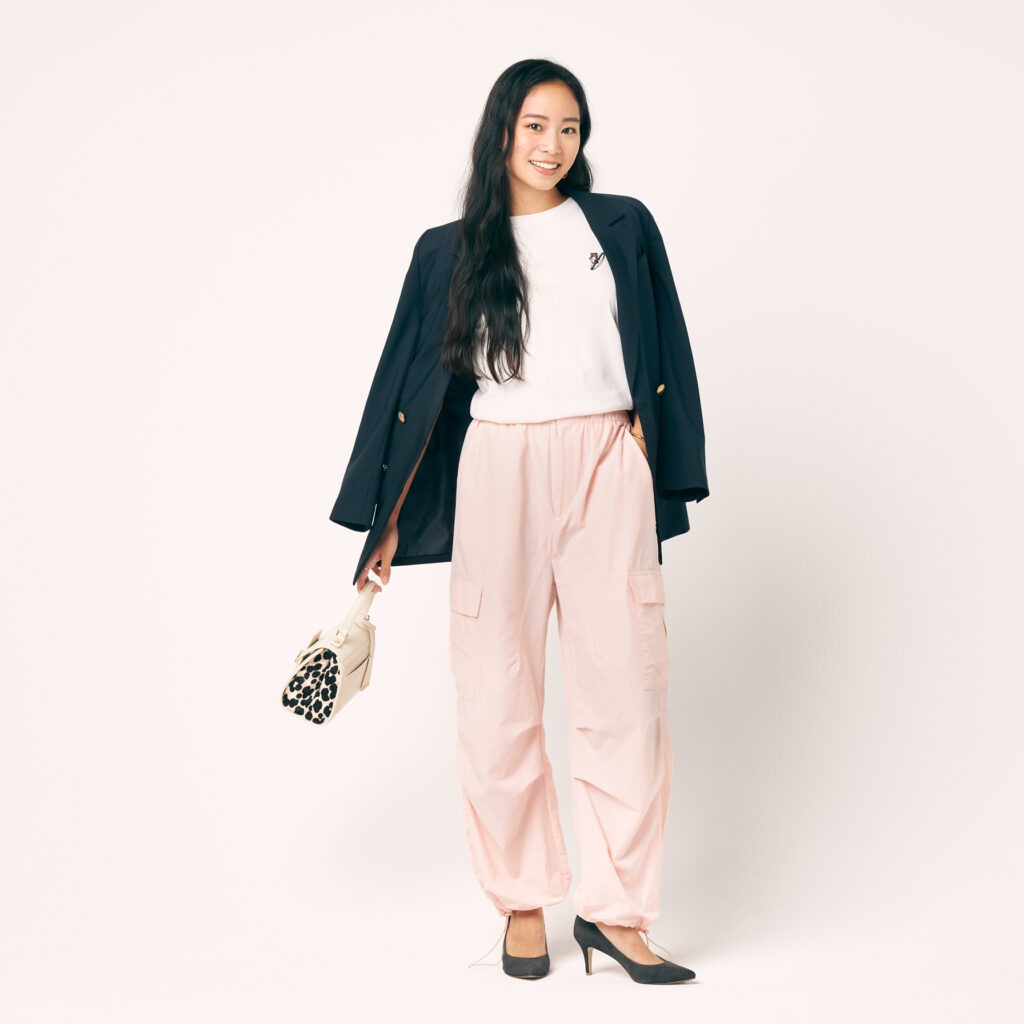 1991年生まれの32歳と自身もCLASSY.世代の若手スタイリスト。身長155㎝と小柄なのにバランスのよい着こなしに注目。私服はパンツ派で、ちょっとモードなアイテムをMIXするのが好み。