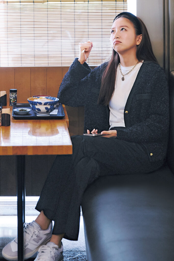 撮影/遠藤優貴〈人物〉、清藤直樹〈静物〉 モデル/鹿沼憂妃 ヘアメーク/小松胡桃(ROI) スタイリング/平沼洋美 取材・文/野田春香 撮影協力/Deloitte Tohmatsu Innovation Park、蕎麦 永盛、おさかな本舗たいこ茶屋 再構成/Bravoworks.Inc