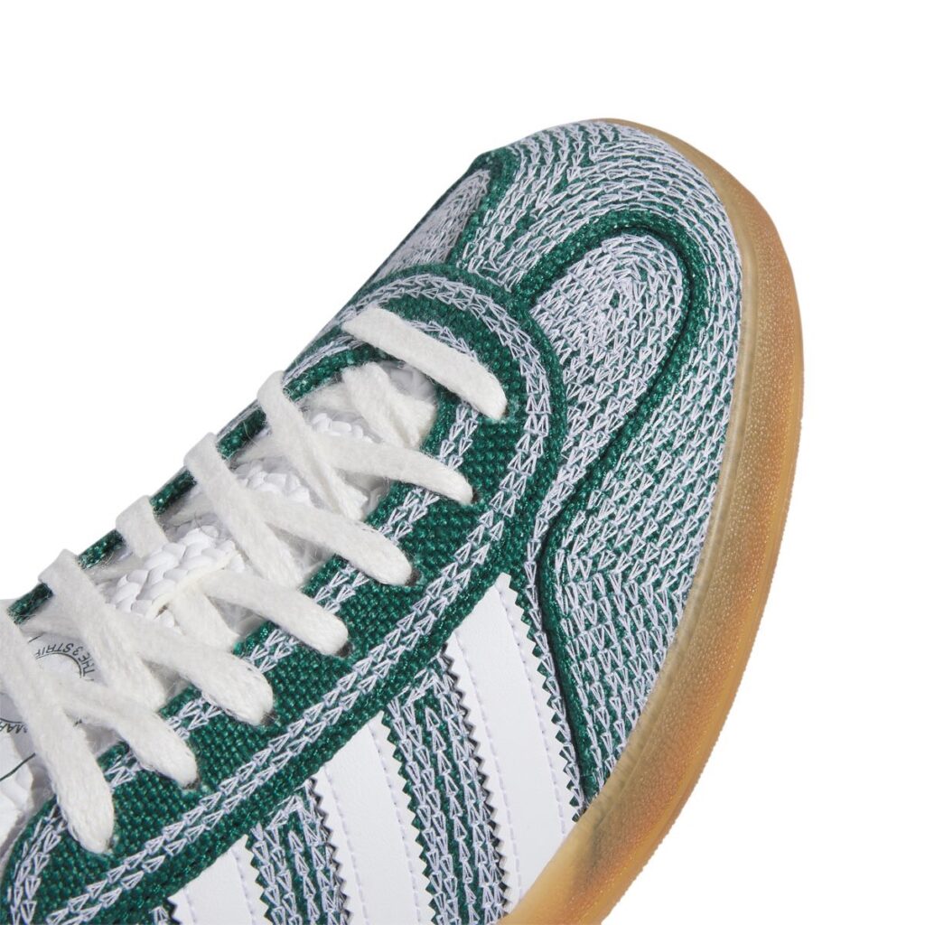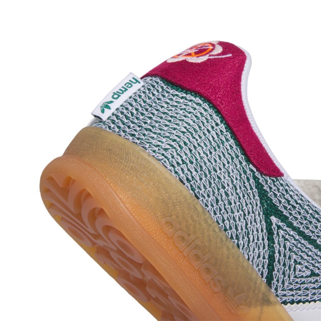今のトレンドに合わせ再解釈されたSW GAZELLE INDOORは、70年代のクラシックなデザインをショーンならではの色彩と個性をふんだんに盛り込み、現代風にアレンジ。天然素材の麻を使用したカレッジグリーンの鮮やかな色のアッパーには、全面にホワイトの刺しゅうをあしらい、オリジナルを刷新。シグネチャーのガムソールはそのままに、ヘリテージ感ある一足に仕上がっています。このコラボならではの「Hemp」の文字を刺しゅうで施したタグと、ヒールタブに配したショーン・ウェザースプーンのロゴにも注目です。