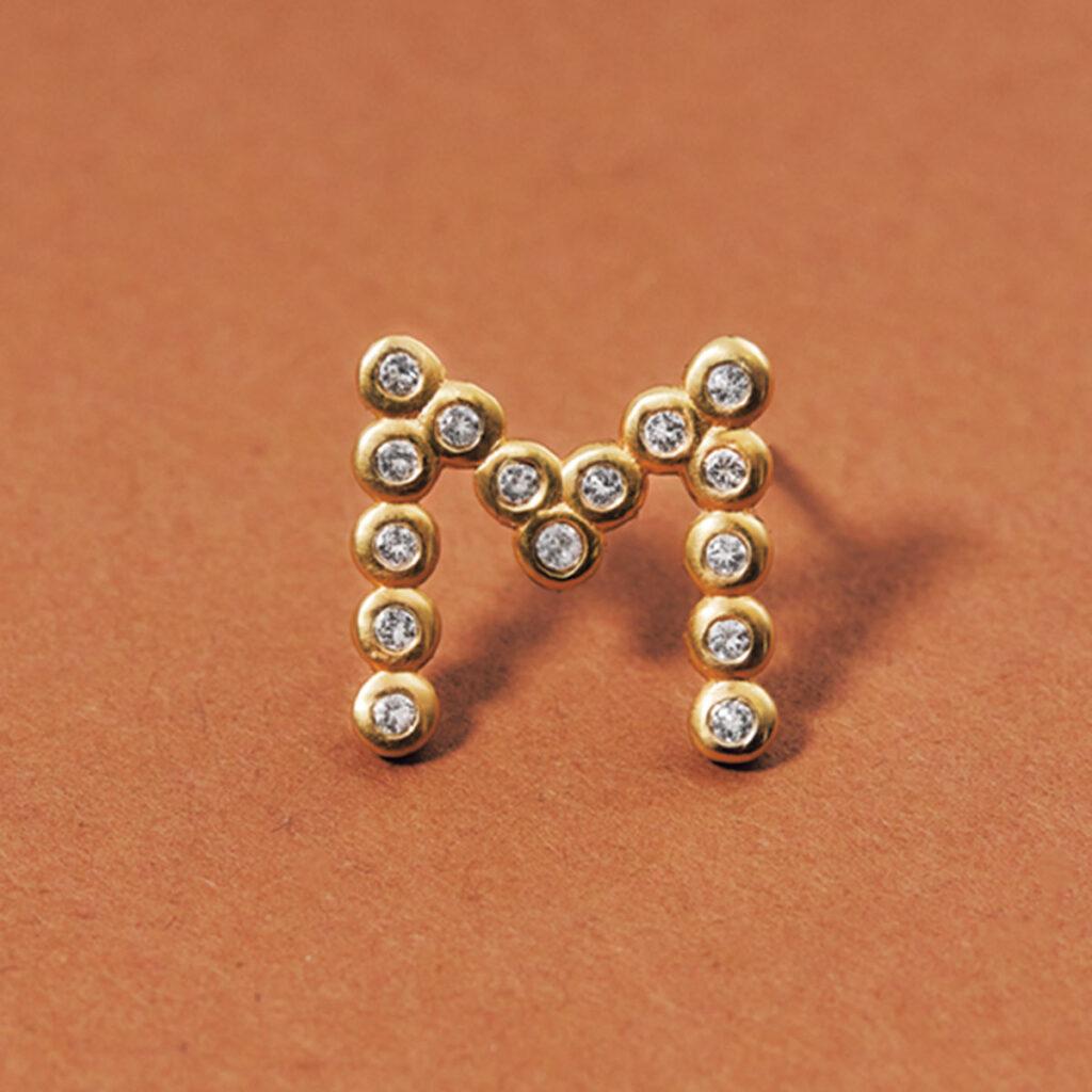 ふらりと立ち寄った神戸旧居留地のBARNEYS NEW YORKで購入。"M"の右上にピアス針がついているので着けると傾くバランスが可愛い。イヤカフを重ねてアシンメトリーな耳元コーデを楽しみたいです。