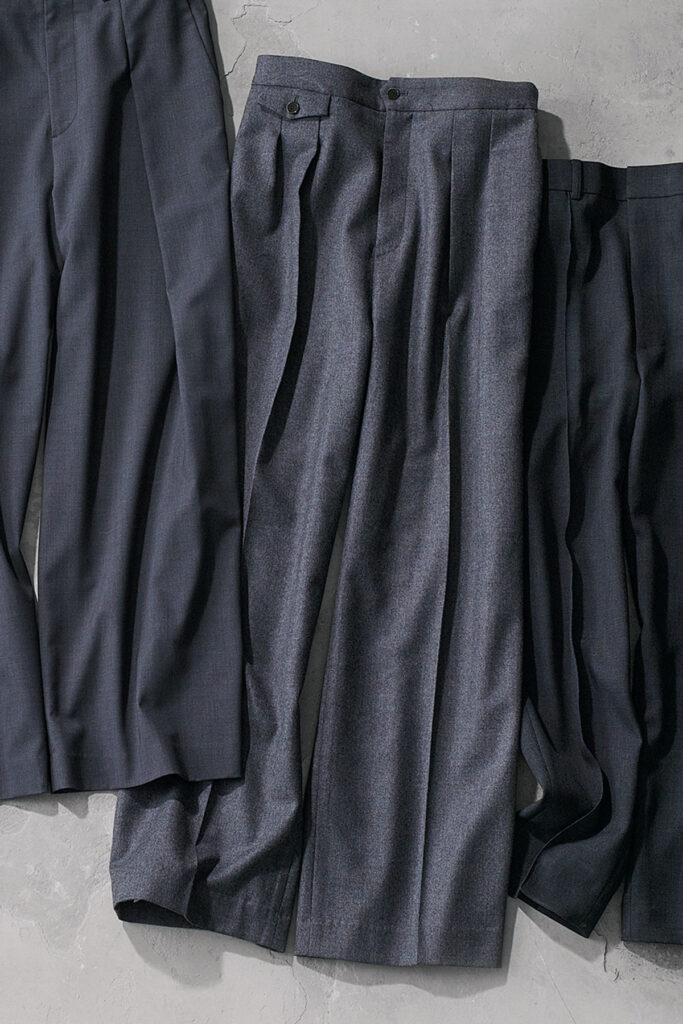なだらかなワイドシルエットにセンタープレスとタックが入った、モードな雰囲気の1本。シャープな見た目ながら、温かみのある素材を使用。真冬もスタイリッシュにはきこなせそうです。サイズ展開 36・38 ¥35,200(ハウント/ハウント代官山/ゲストリスト)