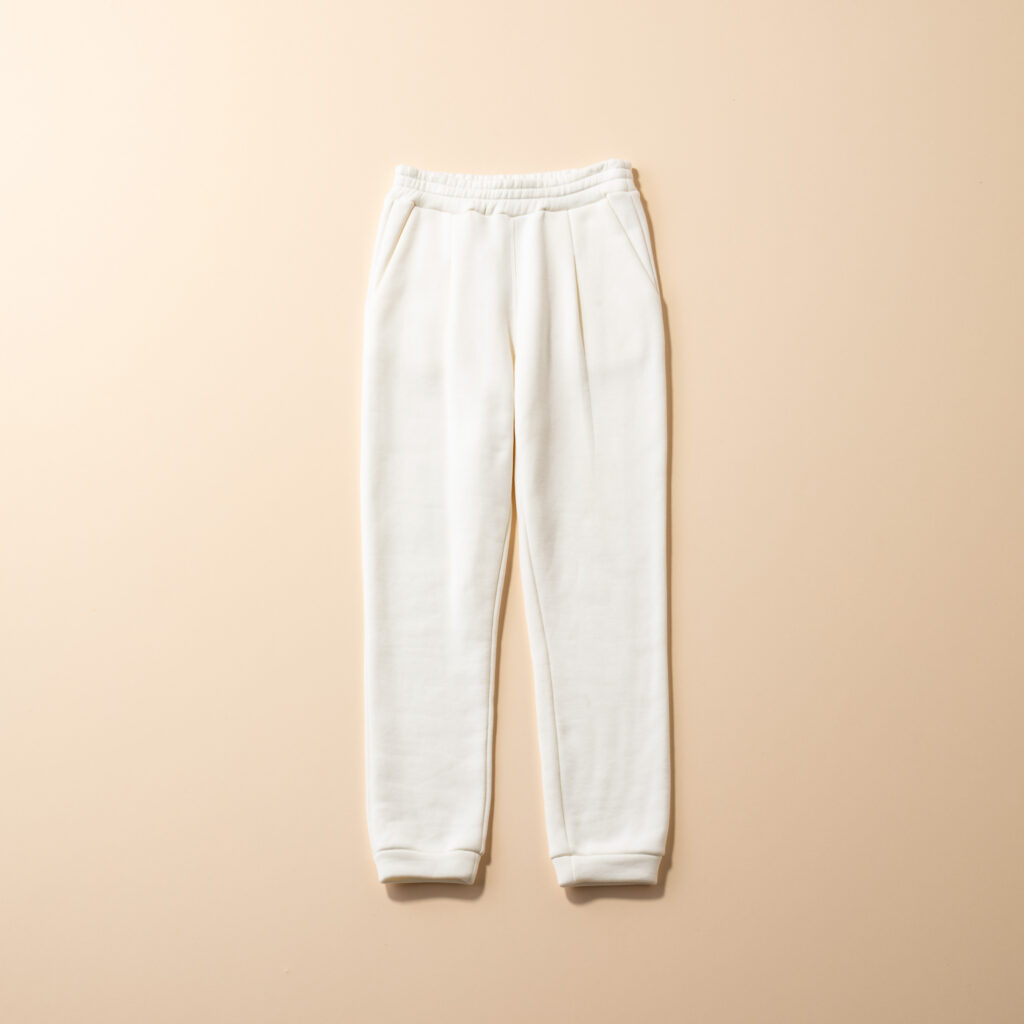 スウェットパンツのカジュアル感を軽減するには、ジャケット合わせが間違いなし。キュッと裾を絞ったタイプなら、きれいめ派もジョグパン感覚でトライできそう。仕上げにパールのネックレスでほんのり女らしさを纏うのをお忘れなく。この一手間で大人っぽさ&上品なムードがぐんとアップします。