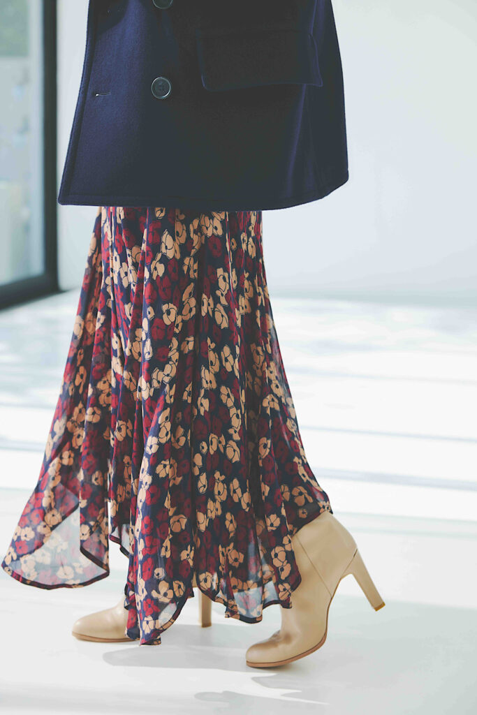 今年じわじわと人気が戻ってきているPコート。オーバーサイズでラフに着られるものも登場していますが、Sサイズさんはジャケット感覚で羽織れる、ジャストサイズのものがしっくりハマります。コーデを引き締めてくれる濃いめのネイビー。ミドル丈なら軽やかな印象に。