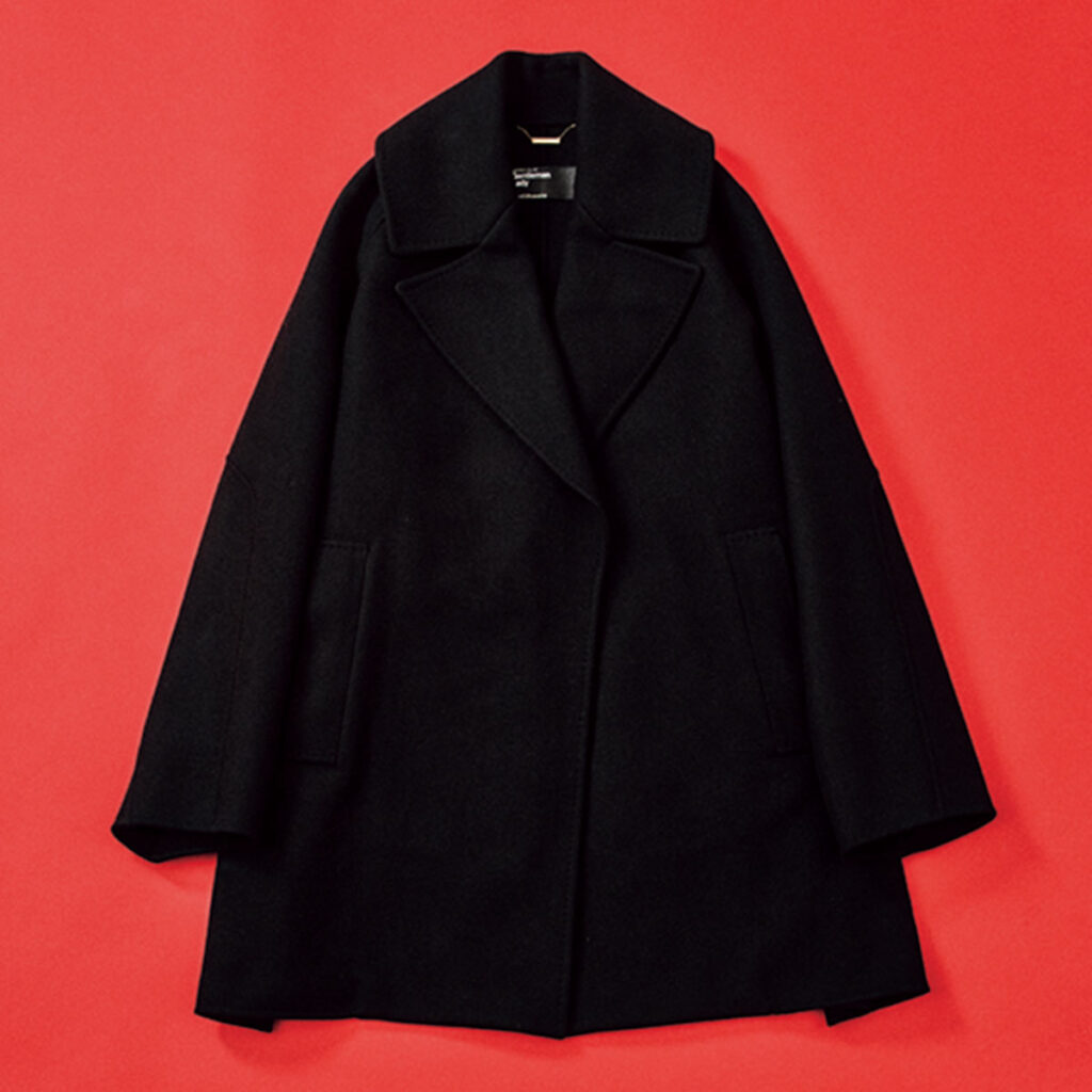 シンプルな黒のコートを持っておらず、長く着られる上質な素材のものを選んで購入。背が高い私でもしっかり長いロング丈と、ボタンレスでさらっと羽織れるオーバーサイズなシルエットがお気に入りです!