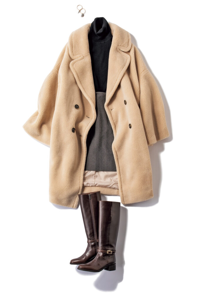ウールとほどよい台形で上品に。タイツ×ブーツで大人可愛いコーデに挑戦したい!¥19,910(アンクレイヴ ホワイト/オンワード樫山)