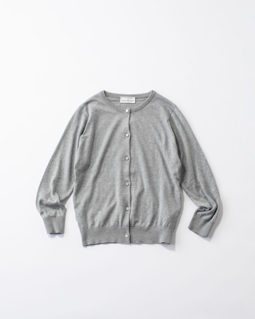 ベーシックなグレーの丸衿カーディガン