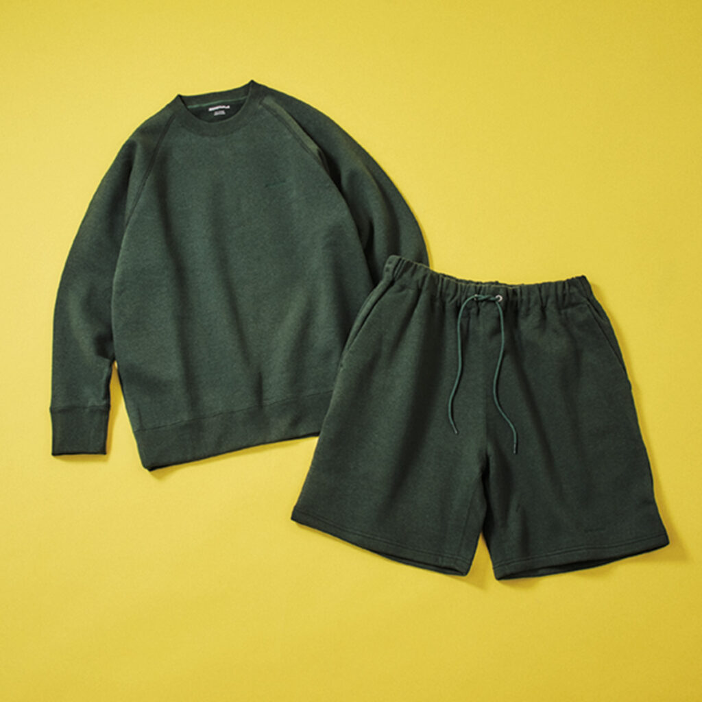「ATON」のディレクター・久﨑康晴さんによる新ブランドのスウェットセットアップは、深みのあるグリーンが絶妙。カジュアルだけどラフすぎないデザインで、どんなスタイルにも自然と馴染むところが◎。