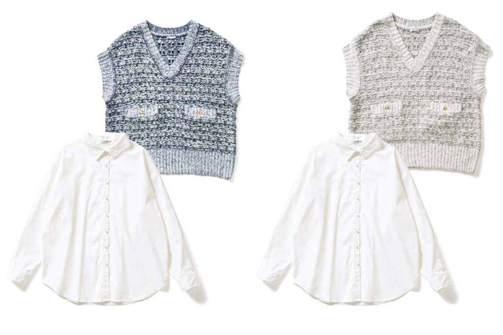 あれこれ悩まずとも簡単に最旬の大人カジュアルコーデが完成。春先はニットベストの下にTシャツやタンクトップを仕込んでもよし。ベスト×シャツ限定セット¥17,600パンツ¥12,100(すべてエマ テイラー/買えるCLASSY.)バッグ¥15,950(ダイアナ/ダイアナ銀座本店)ローファー¥46,200(ファビオルスコーニ/ファビオルスコーニルミネ有楽町店)ピアス¥99,000(モニス/フォーティーン ショールーム)ブレスレット¥37,800(アビステ)