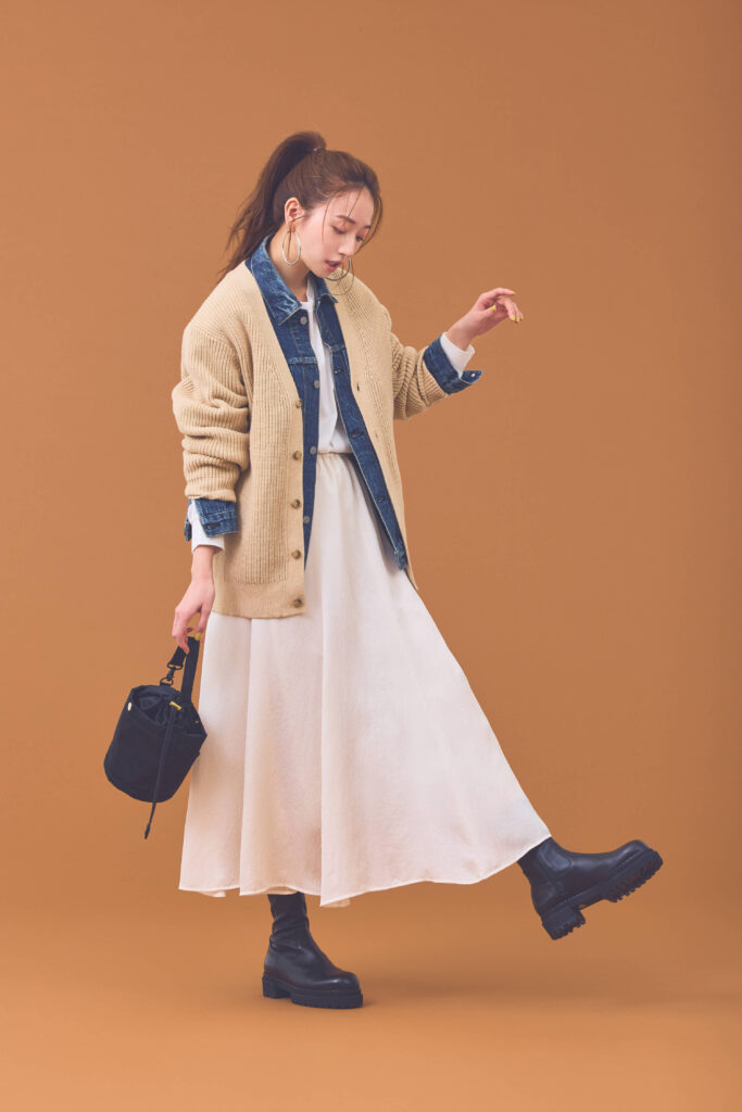 アウター代わりのニットカーデで暖かさとトレンド感を手に入れて