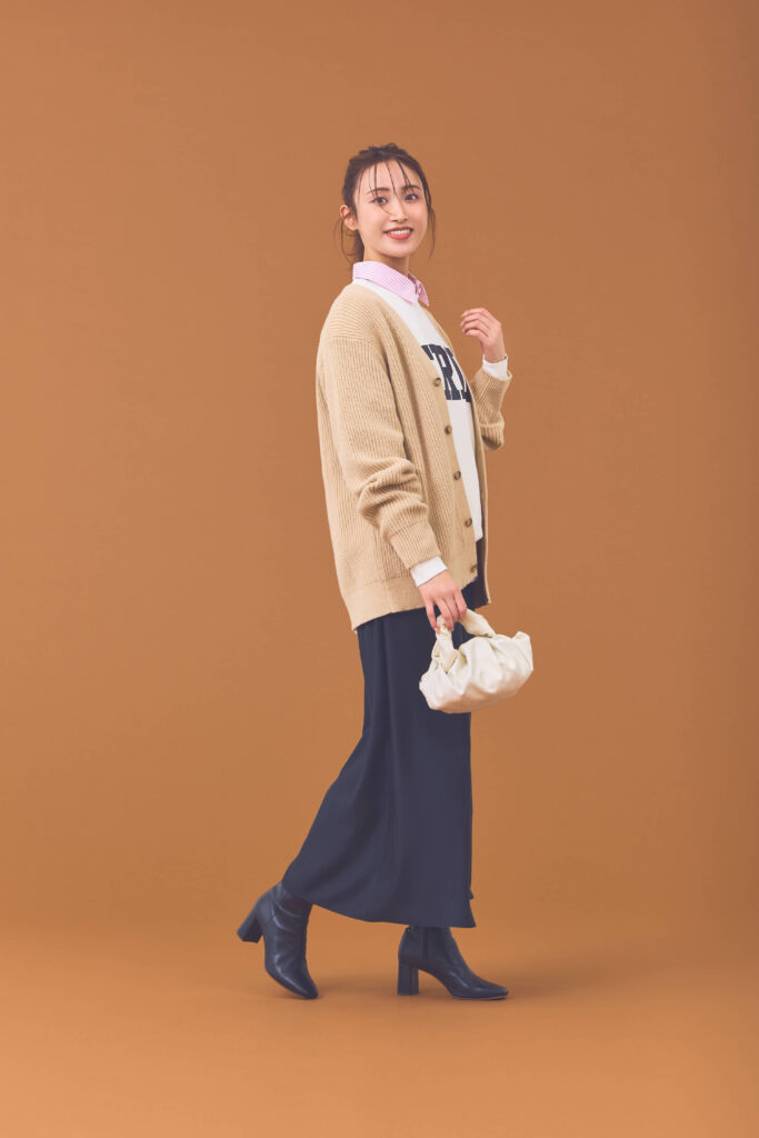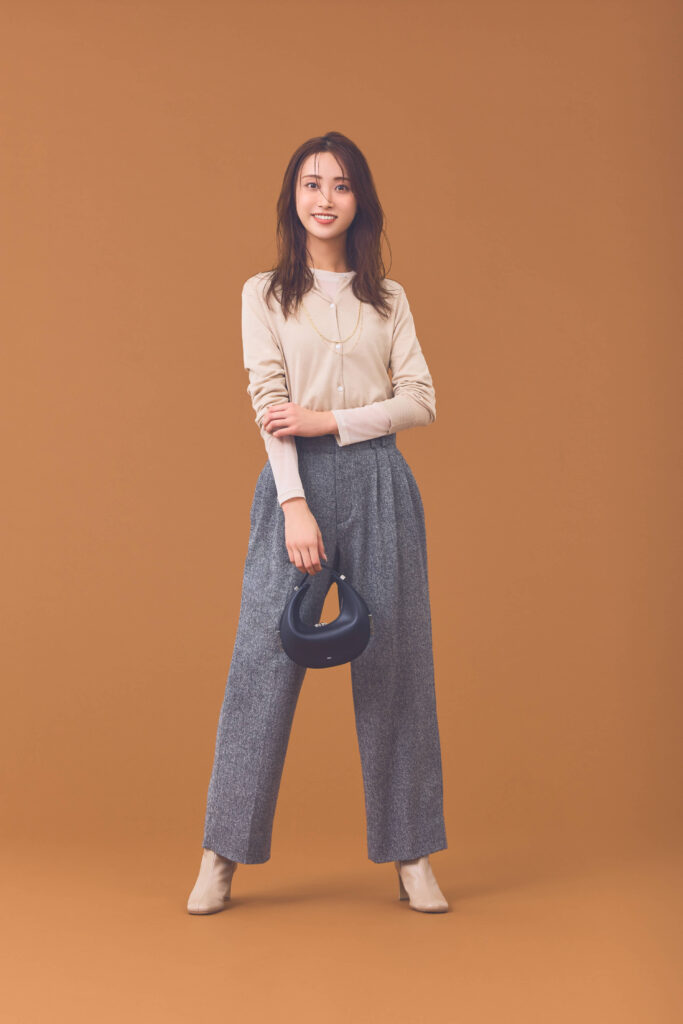 使い勝手はよいものの、コーデがマンネリ化しがちな定番カーディガン。重ねるアイテムや重ね方を工夫するだけで、簡単に垢抜けが叶うんです。CLASSY.リーダーズ鈴木悠華さんに、ベージュのハイゲージ&ミドルゲージカーディガンを使ったレイヤードコーデに挑戦していただきました。