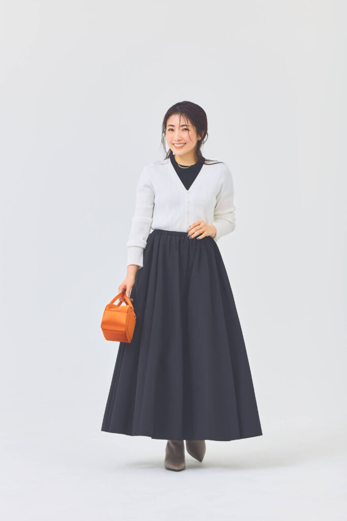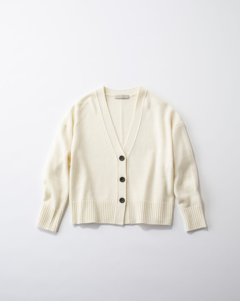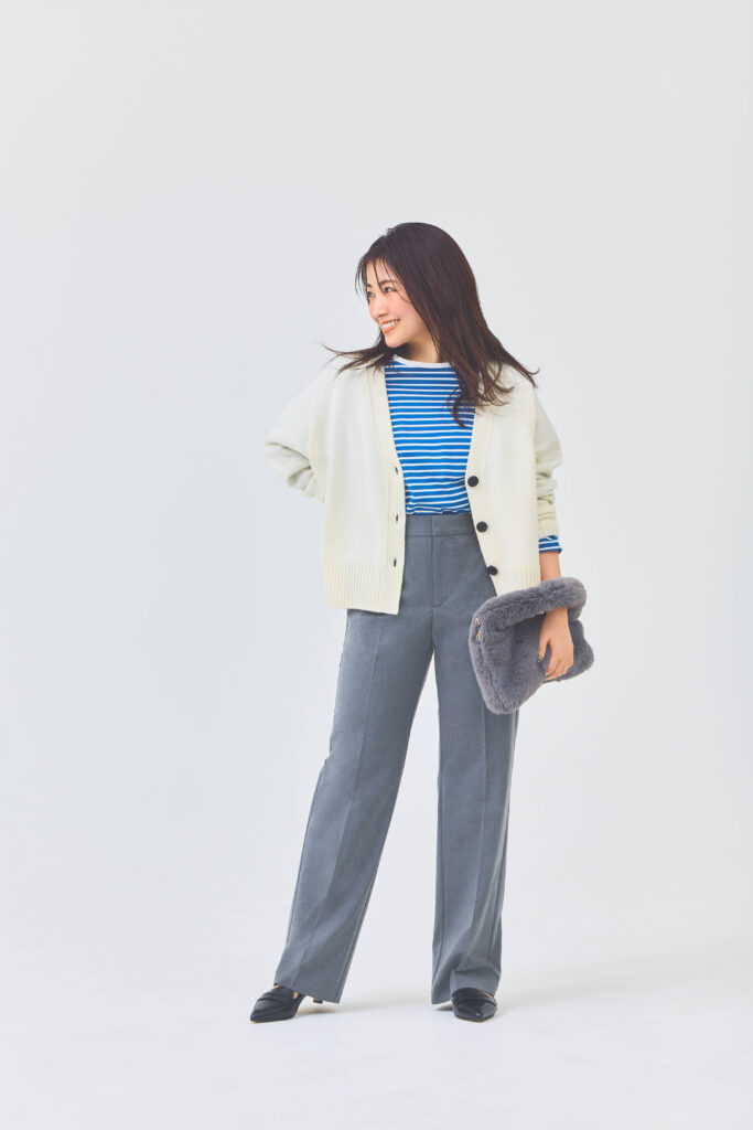 使い勝手はよいものの、着こなしが一辺倒になりがちな定番カーディガン。重ねるアイテムや重ね方を工夫するだけで、簡単に垢抜けが叶うんです。CLASSY.リーダーズ飯田百希さんに、白のハイゲージ&ミドルゲージカーディガンを使ったレイヤードコーデに挑戦していただきました。