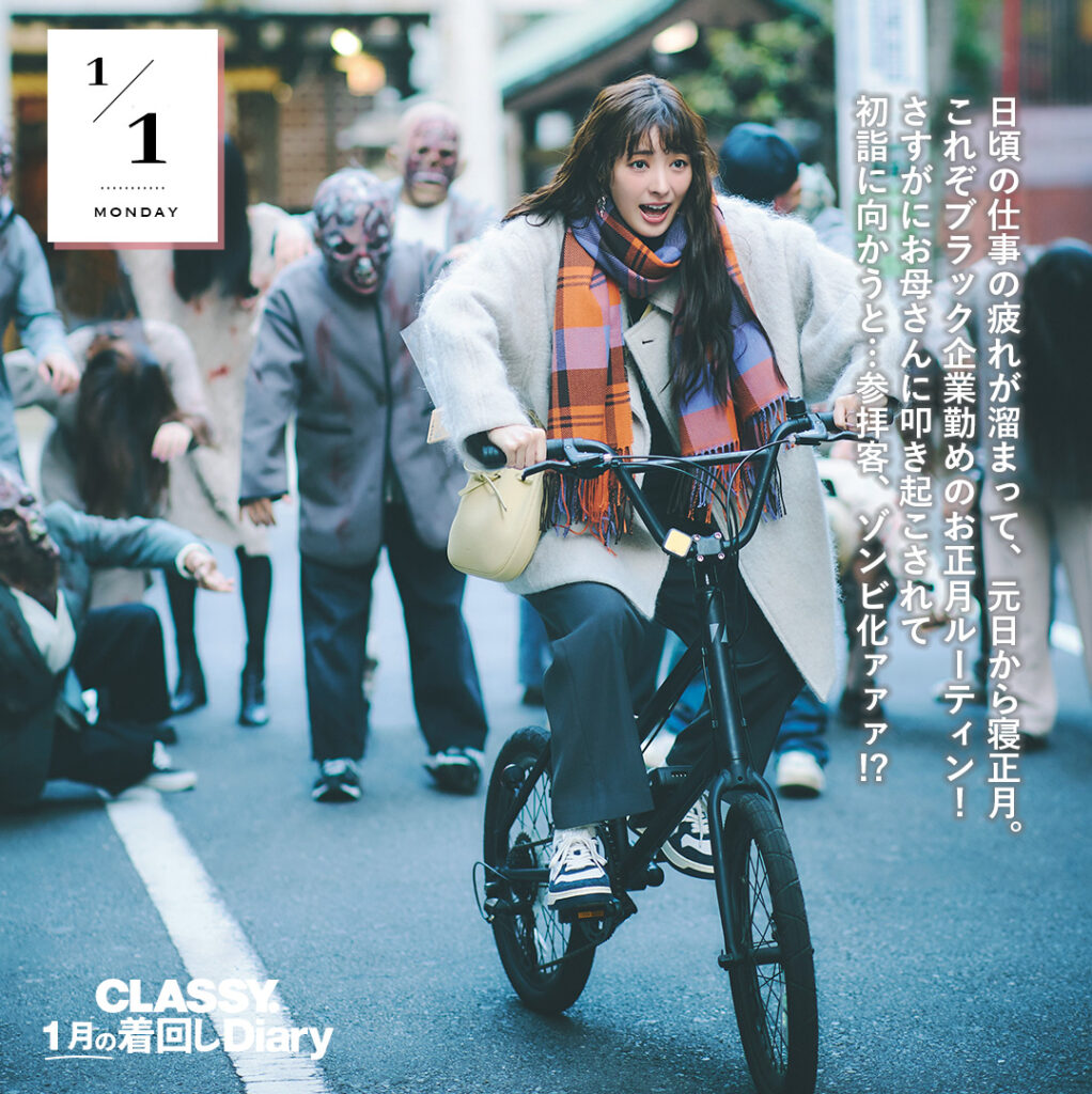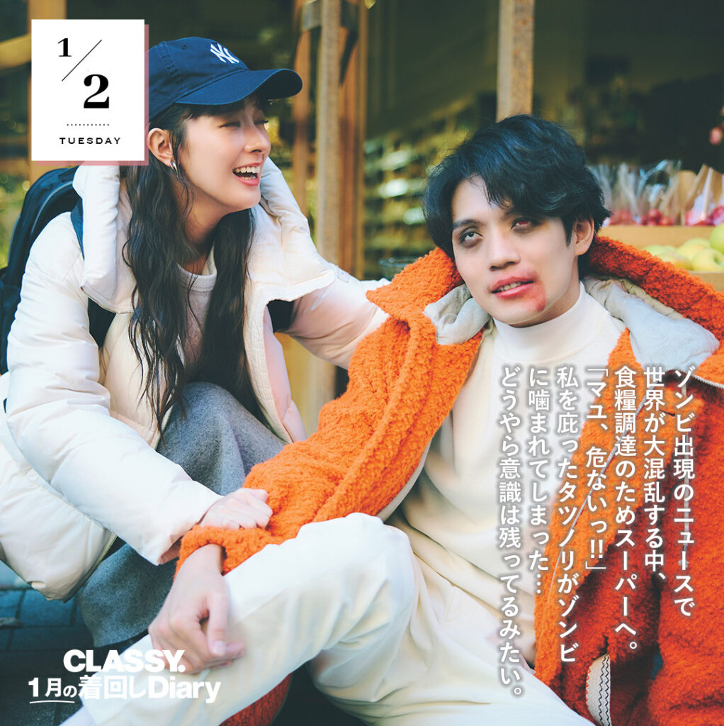 ある朝ゾンビが大量発生!?「グレーとベージュで生き延びる!1月の着回しDiary」のストーリーは?|CLASSY.2024年2月号
