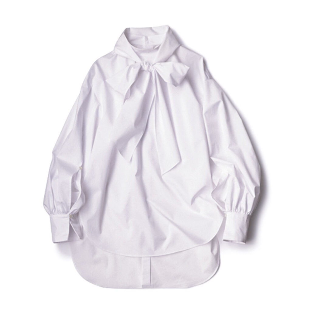 [THREE SQUARE]シャーリングボウタイブラウス