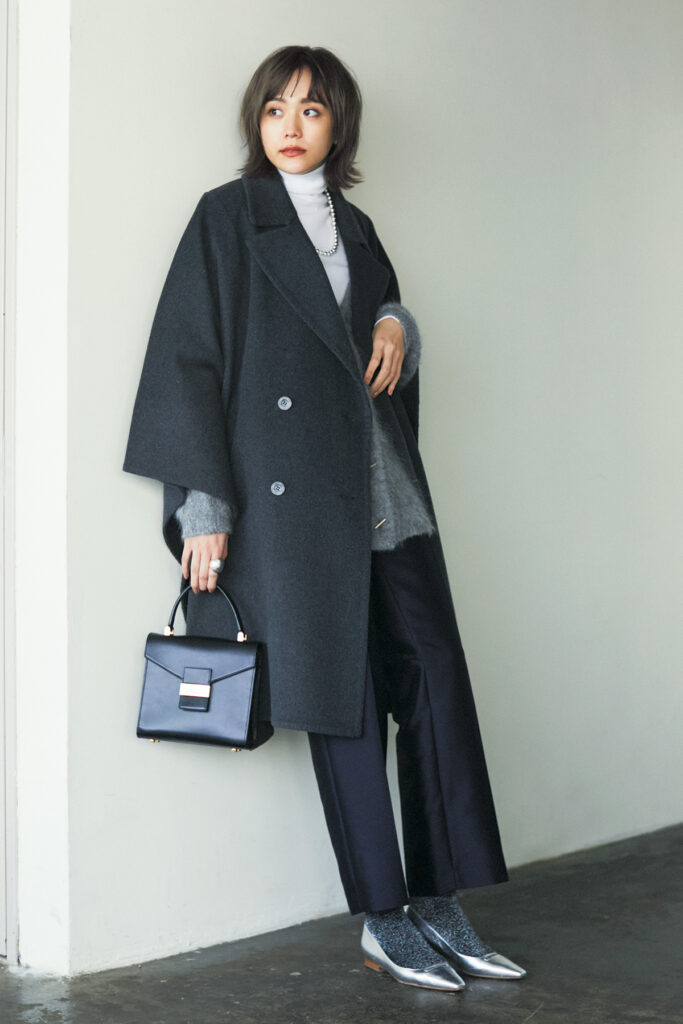 ラメとシルバーの合わせ技でシックな冬コーデがたちまち洗練