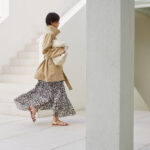 トレンチコートからのぞく、歩くたびに美しいラインを描くプリーツドレス。ボリュームたっぷりのワイドジーンズやコットンワイドパンツには、クロップドTシャツやニットベスト、シルエットの美しいジャケットを合わせた春のレイヤリングスタイルを。チェック柄のUVカットロングブリムキャップや大容量のレザータッチバッグなど、機能美にあふれたアクセサリーがコーディネートを彩ります。