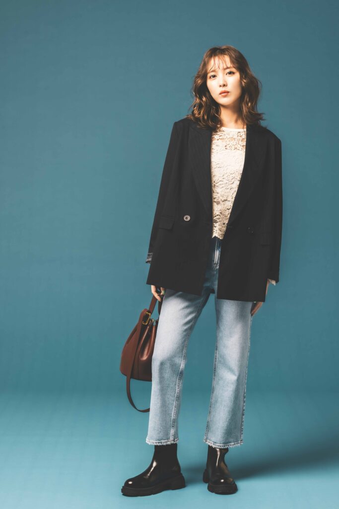 [春先コーデ]ビックジャケットのインナーに着ればトレンド香る甘辛MIXスタイル