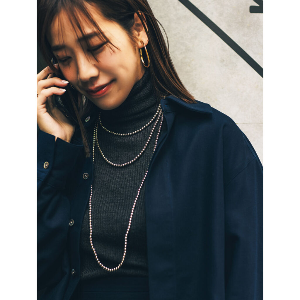 スタイリングに統一感があって、すっきりまとまっていることがレイヤードをオシャレに見せる必須条件。アクセサリーや小物使いで着こなしの精度を上げるのも大事なポイントです。