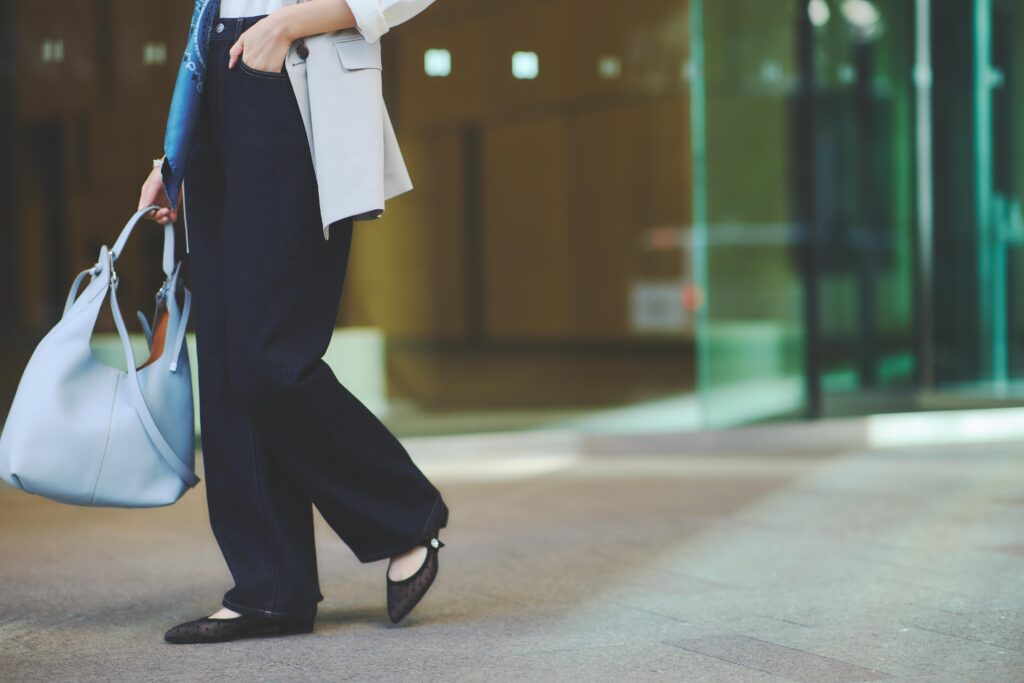 春から働くのは今までよりも服装ルールが緩めの部署。“オフィカジ”ってどの程度が正解!?と迷ったら、きちんと感とこなれを両立できるジレで初出勤を。襟元に鮮やかブルーのスカーフをサッと合わせたら、春らしさがぐんとアップします。ジレ¥17,000(PLST)ニット¥2,990デニムパンツ¥3,990(ともにUNIQLO)スカーフ¥24,200(マニプリ)バッグ¥75,900(ジャンニ キアリーニ/ジャンニ キアリーニ 銀座店)フラットシューズ¥16,500(ダイアナ/ダイアナ 銀座本店)メガネ¥44,000(アイヴァン/アイヴァン 東京ギャラリー)ブレスレット¥24,200(ワンエーアールバイウノアエレ/ウノアエレ ジャパン)