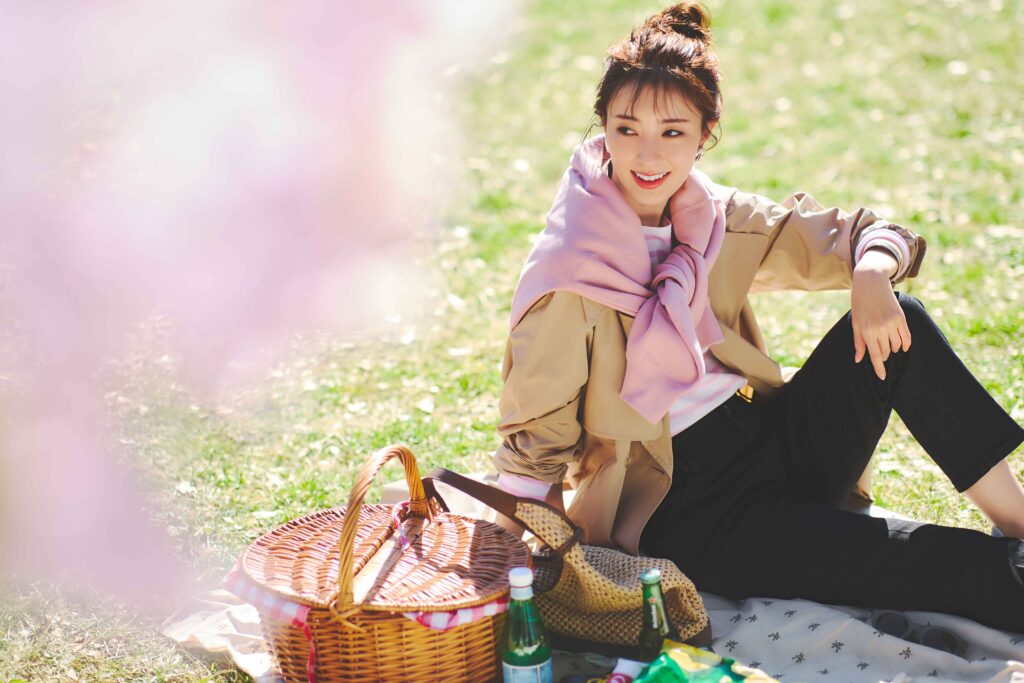 ピンクを効かせたコーデでお花見ムードを盛り上げて