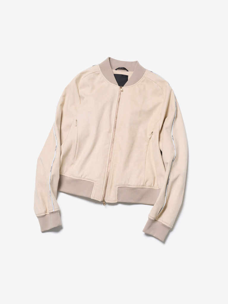 ハードなディテールを省いたミニマルなデザインとハリと光沢のある上質素材で都会的に着られる、MA-1型の中綿入りブルゾン。女性らしいロングワンピースと合わせて甘×辛なMIXコーデを楽しみたい。