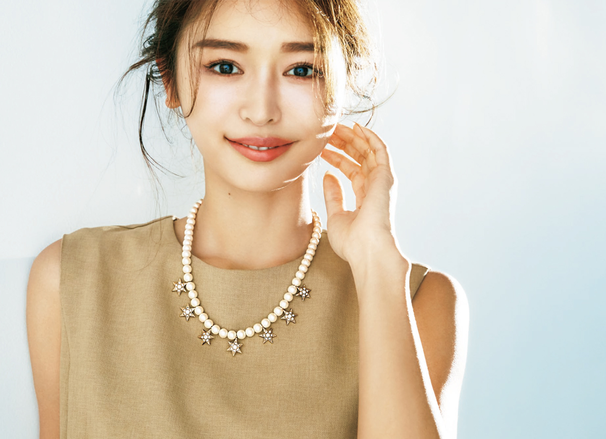 パールネックレスに7つの星が煌めくゴージャスなネックレス。シンプルコーデから特別な日のドレスアップまで幅広く活躍します。