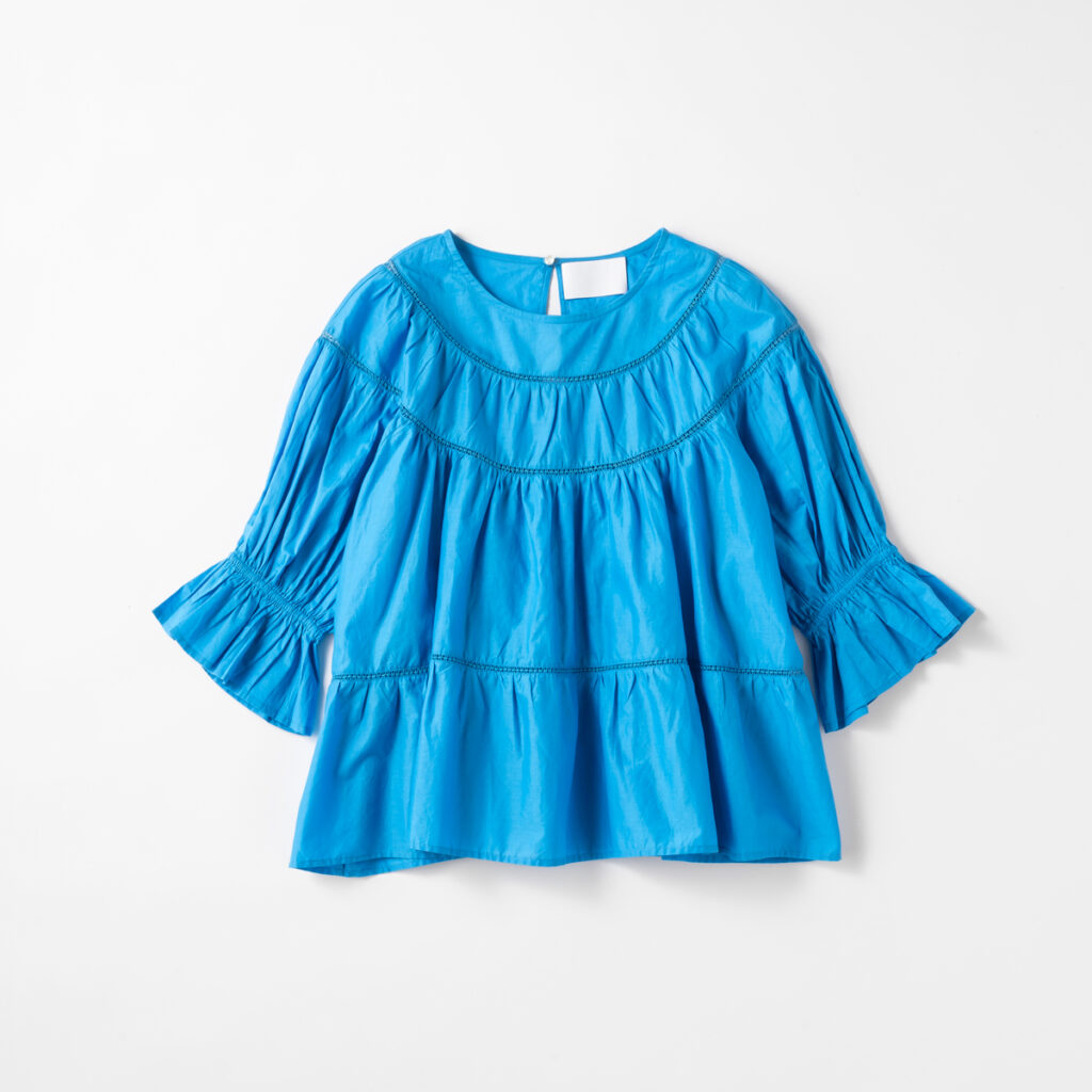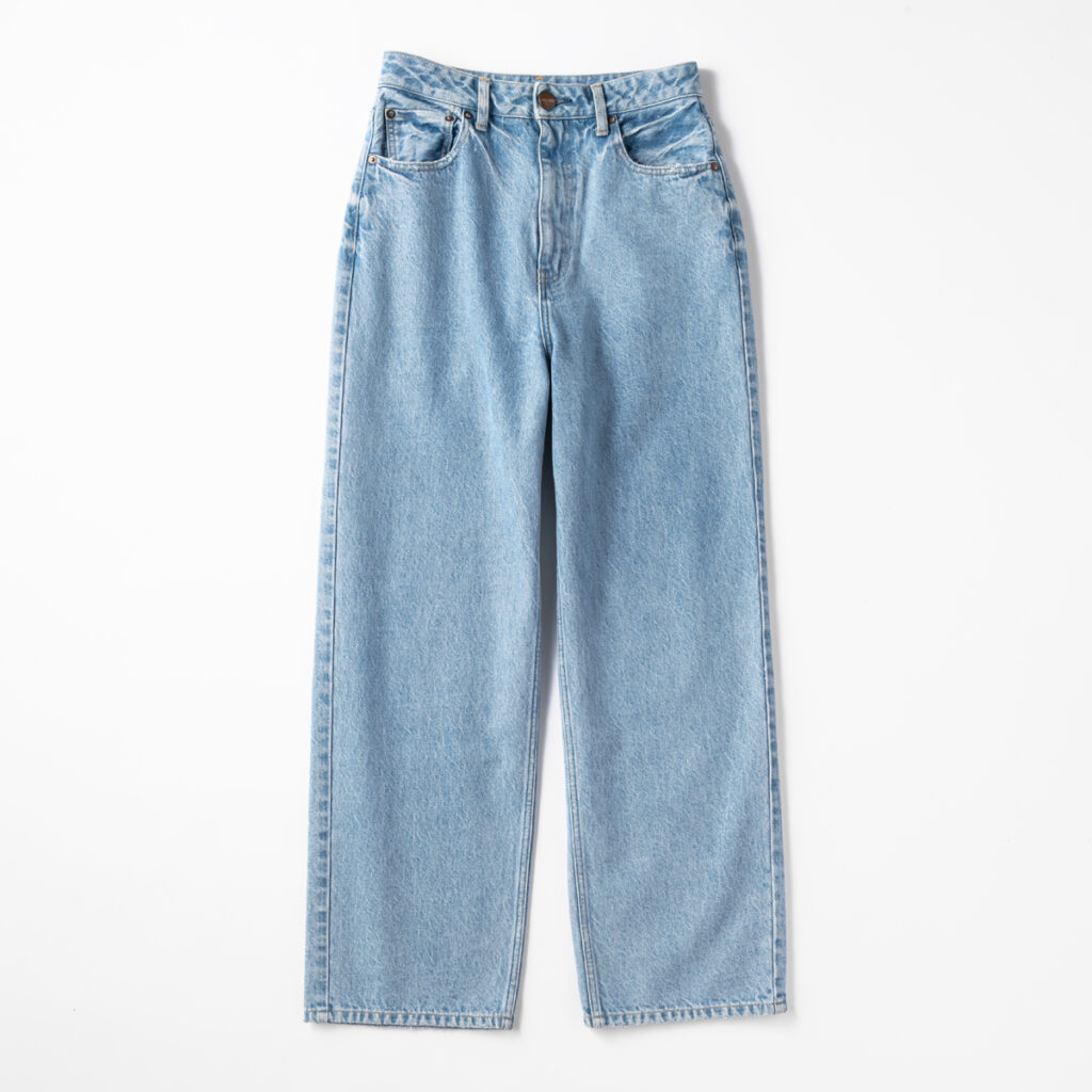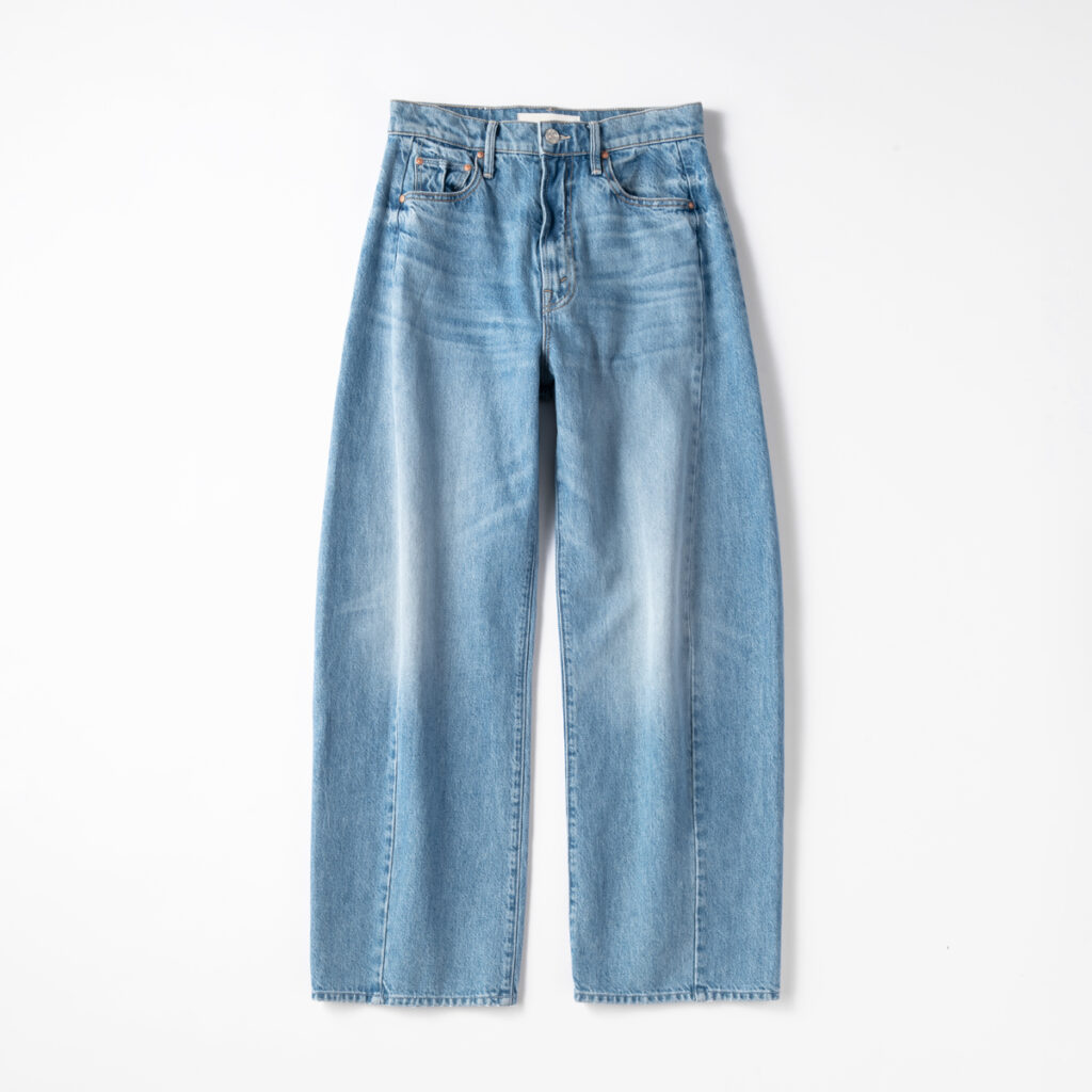 鮮やかなブルーのトップスは、着ていてすごく気分が上がりました! 寒色系のブルー、そしてデニム合わせなら甘い印象にならないので、私みたいな色物初心者も挑戦しやすそうです。デニムのシルエットも今まで穿いたことがないもので新鮮でした!