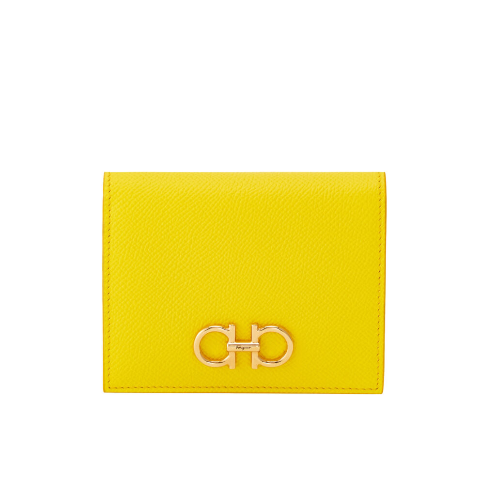 「フェラガモ」の定番、ダブル・ガンチーニオーナメントのスモールレザーグッズに、金運をつかさどる色“イエロー”の新色が仲間入り。3月15日の最強開運日に向けてGETしたい!