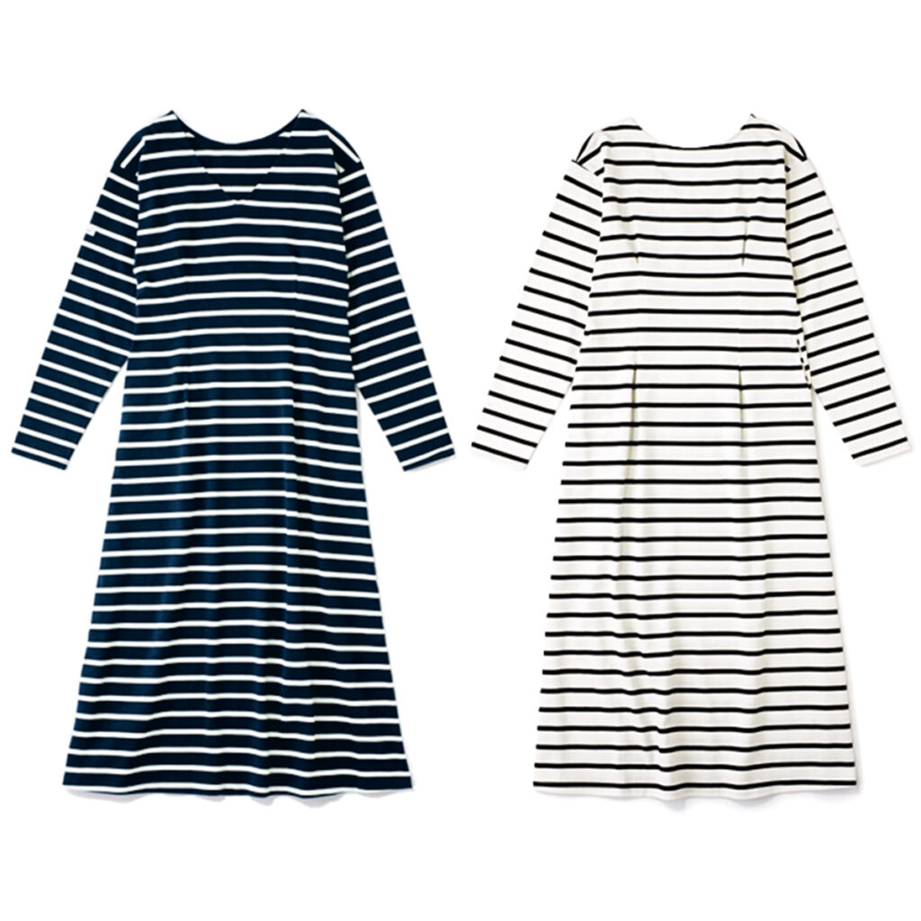 ボディにダーツを入れることで、大人の体をキレイに 見せるシルエットを実現。背中はV開きになっていて、 後ろ姿までも美しく演出。ボーダーワンピース¥14,3 00(ピカデリー/買えるCLASSY·)バッグ¥11,000 (ル・ベルニ/キャセリーニ)ローファー¥33,000(銀 座かねまつ/銀座かねまつ6 丁目本店)イヤリング¥5, 250ブレスレット¥5,250(ともにアビステ)ネックレス ¥2,860(アネモネ/サンポークリエイト)
