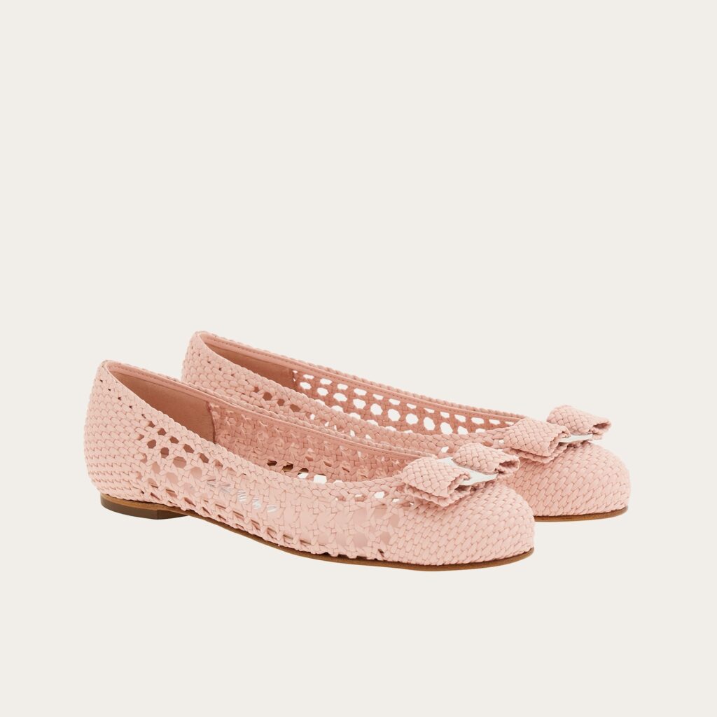 柔らかなレザーを細く加工し、精巧に編み上げられてたイントレチャートスタイルの新作シューズ。「VARA」ファミリーの最大の特徴であるヴァラ・リボンのボウ部分も、同じくレザーで編み上げられています。見た目も履き心地も軽快で、これからの時期にぴったり! サンダル代わりにスタイルに取り入れるのもおすすめです。