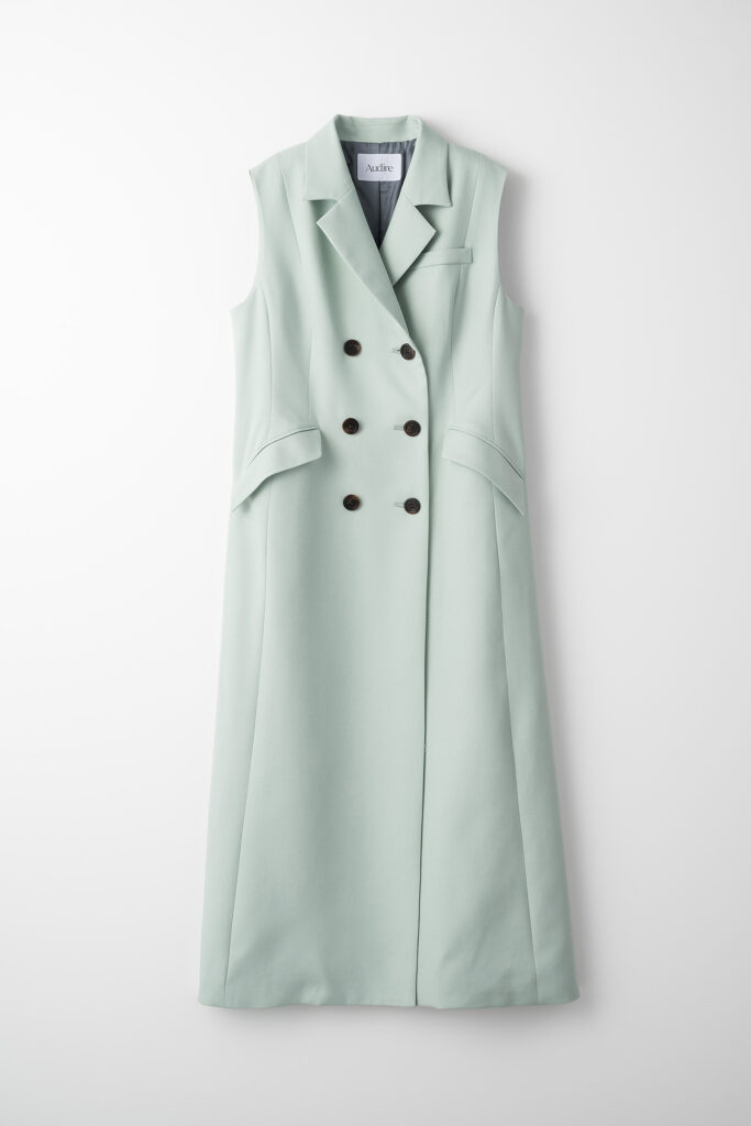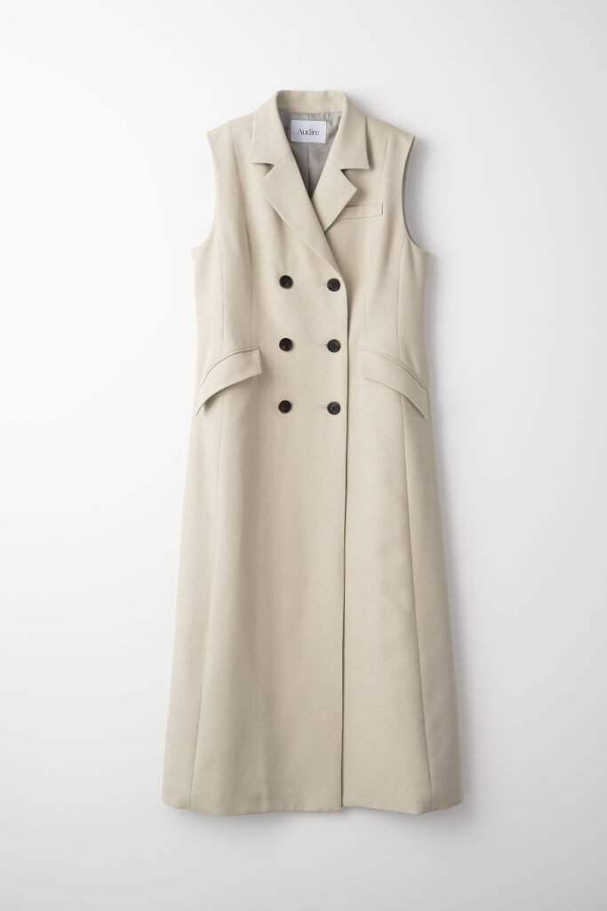 「Audire(アウディーレ)」は、「凛としたフェミニン」のコンセプトに加え、Lady(レディ)がテーマのブランド。今回登場するジレも、1枚で様々なシーンに「なじむけれど埋もれない」フレキシブルなアイテムです。360度どこから見ても美しいように滑らかな曲線で作ったシルエットは、まるで1枚のドレスのような1着。下襟を大きくし、襟元から裾先までフォーマル感漂う1枚に仕上げられています。インナーにブラウスやセーターを合わせれば、四季折々で組み合わせの妙を楽しめる万能なロングジレ。目を惹く襟元は顔まわりを美しく見せ、小顔効果も期待大。ヒップに向けて斜めにつけたフラップポケットは、ウエストを引き締めるアクセントとなっています。あえてラフなTシャツやスニーカーと合わせて、周囲にワンランク差をつける遊び方もおすすめです。