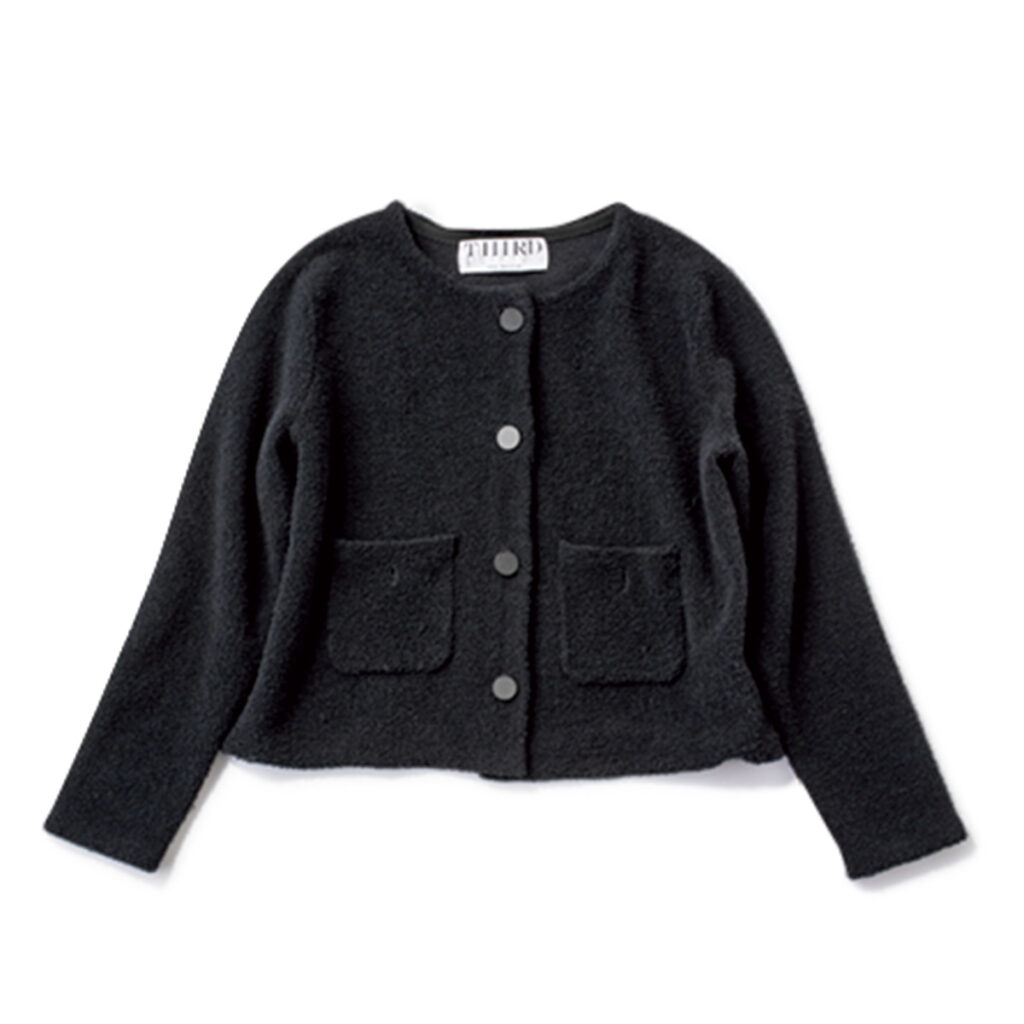 ちょっと甘めが気分の日にも使えるコンパクトな羽織りを。一見キレイめだけど素材がパイルだからラフに着こなせてかしこまりすぎません。¥36,300(THIRD MAGAZINE) -