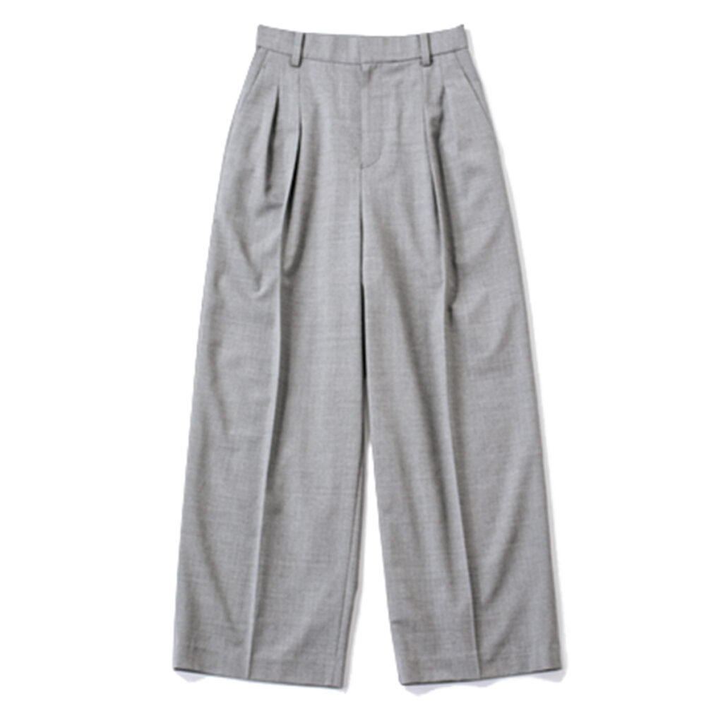 白黒の服をなじませてくれるグレーで投入。ストレートシルエットのワイドパンツはスタイルアップを叶えてきちんと見えも担保。¥22,000(プラージュ/プラージュ代官山店) -