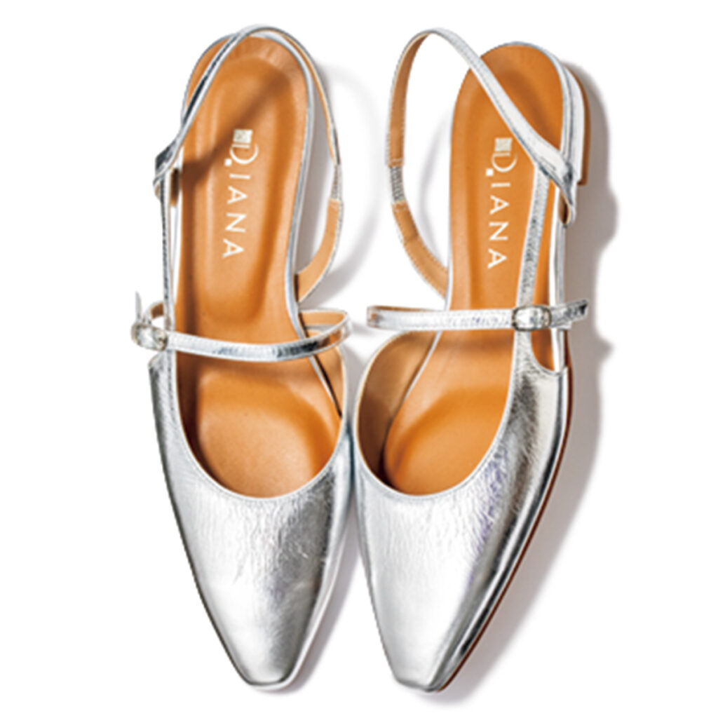 今グッと新鮮に見えるメリージェーン。トレンドのメタリックシルバーで取り入れると足元からトレンド感が漂いオシャレ上級者見えも。¥16,500(ダイアナ/ダイアナ 銀座本店) -