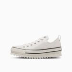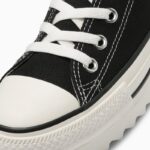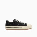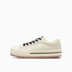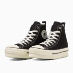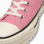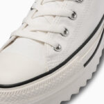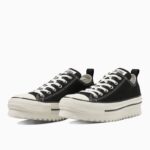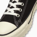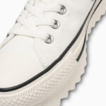 新たにラストの設計、全体にフォームを内蔵したアッパーやファットシューレースの採用することにより、シューズ全体でボリューム感を演出したキャッチ―なデザイン。斬新なシルエットながら、バルカナイズド製法、トウキャップやトウガードといったオールスターのアイコニックなディテールを継承しています。ベーシックなブラック、ストーンホワイトとコーディネートのアクセントとなるブルーの3色展開です。