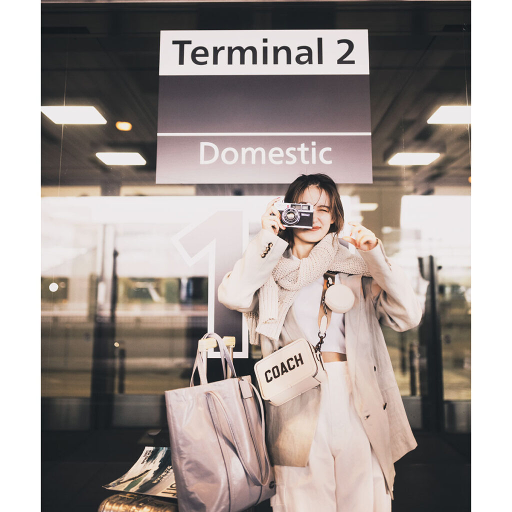 現地の気温を見越して、脱ぎ着できるレイヤードが鉄則。タンク+ジャケット+カーデと筍のように重ねておくと、出発前や機内での温度調節がしやすく便利。到着後はタンク1枚、靴下も脱いでサンダルになれば、即、現地コーデに。