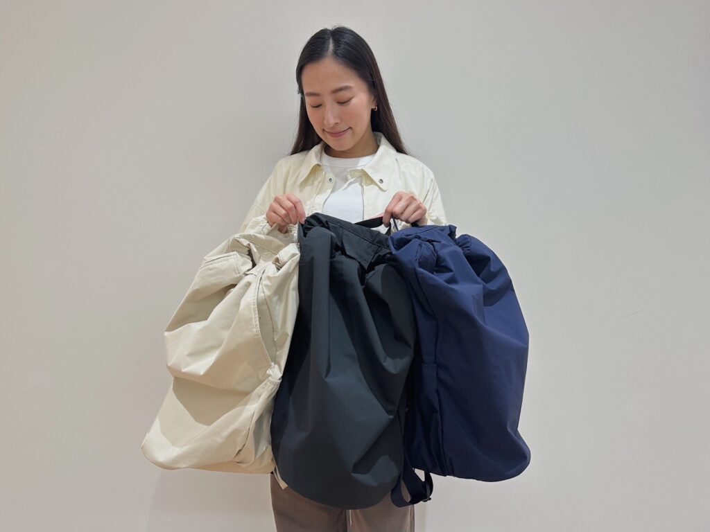 3.「ドローストリングバックパック」¥3,990[3色展開]