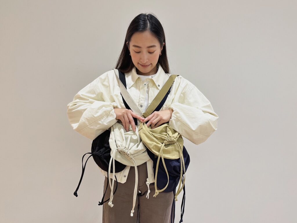 「ドローストリングショルダーバッグ」がそのままひと回り小さくなった、ミニバッグ。小さくても必需品がしっかり入る収納力が嬉しい。よりタウン仕様で使いやすく、サブバッグとの2個持ちも楽しめます。ほどよい存在感で、シンプルコーデのアクセントとしても活躍しそう。