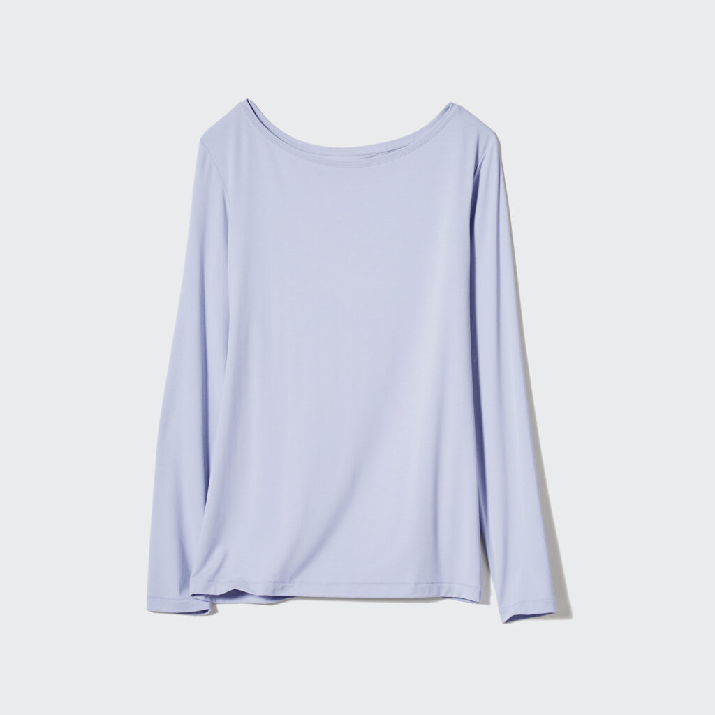 2024年最新のウィメンズのエアリズムインナーは、紫外線対策ができる「エアリズムUV カットクルーネックT」が新登場。シルクを7%配合したなめらかな肌ざわりの新素材で、春先の肌寒い時期から重ね着アイテムとしても活躍します。UVカット機能に加え、汗のにおいなどの消臭機能や吸放湿の快適機能がプラスされました。