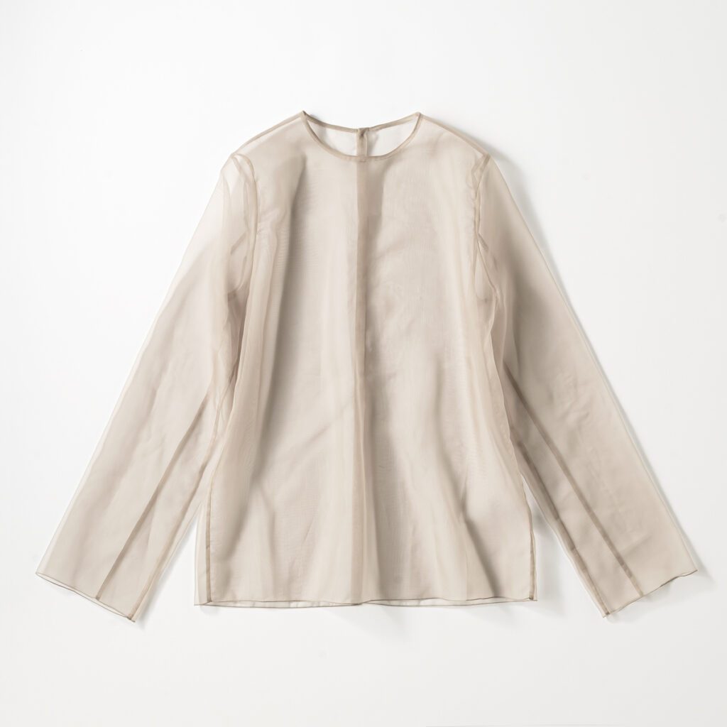 ほっこりしやすいクルーネックブラウスこそ、シアー素材をセレクト! さらっと着るだけで洗練ムードを漂わせてくれます。リラクシー感のあるゆとりあるシルエットだから、1枚でスタイリングに大人の抜け感を演出。スウェットやニットの下に重ねて裾を覗かせる小技テクにも使えます。