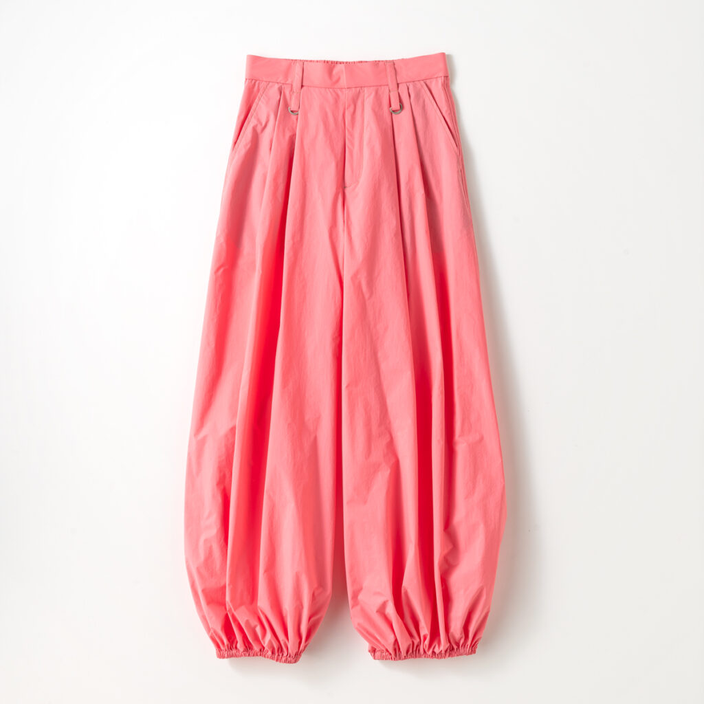 かっちりしすぎてしまう黒のセットアップは、素材やディテールでうまくバランスを保つのがコツ。パンツの裾はギャザーを絞ってワークパンツ風にも、緩めてシンプルなワイドパンツにもなる2way仕様。着回しの幅もぐんと上がります。