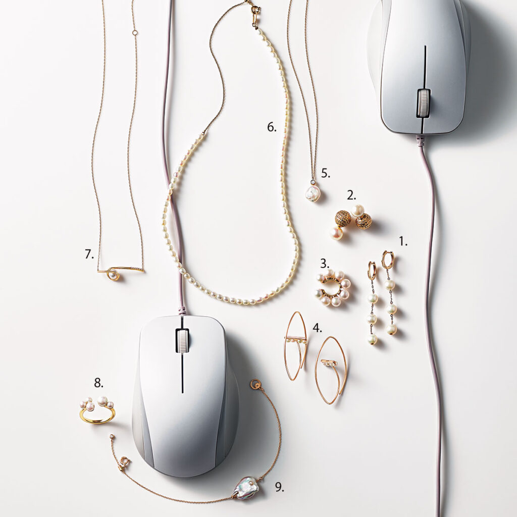 上品で清潔感のあるパールは、誰からも好印象でビジネスシーンにおける万能選手。モダンな旬のデザインは一点でも華やかさを発揮し、手持ちのジュエリーと重ねてポイント使いすると洗練度アップ。これを着けておけば大丈夫と思えるパールなら、自信を持って仕事に取り組めます。1.ピアス〈K10YG×淡水パール〉¥46,200(ココシュニック)2.ピアス〈K18YG×アコヤパール〉¥66,000(ジジ/ホワイトオフィス)3.イヤカフ〈SV935+K18YGプレーティング×アコヤパール〉¥33,000(アルティーダ ウード)4.ピアス〈K10YG×アコヤパール〉¥125,400(ヒロタカ/ヒロタカ 表参道ヒルズ)5.ネックレス〈K18YG×淡水パール×DIA〉¥92,400(マリハ)6.ネックレス〈SV925(YGコーティング)×淡水パール〉¥14,300(Jouete)7.ネックレス〈K18YG×アコヤパール×DIA〉¥99,000(ポンテヴェキオ/ポンテヴェキオ 銀座並木通り本店)8.リング〈SV925(YGコーティング)×貝パール〉¥9,900(Jouete)9.ブレスレット〈K10YG×淡水パール×DIA〉¥38,500(フェスタリア ビジュソフィア)