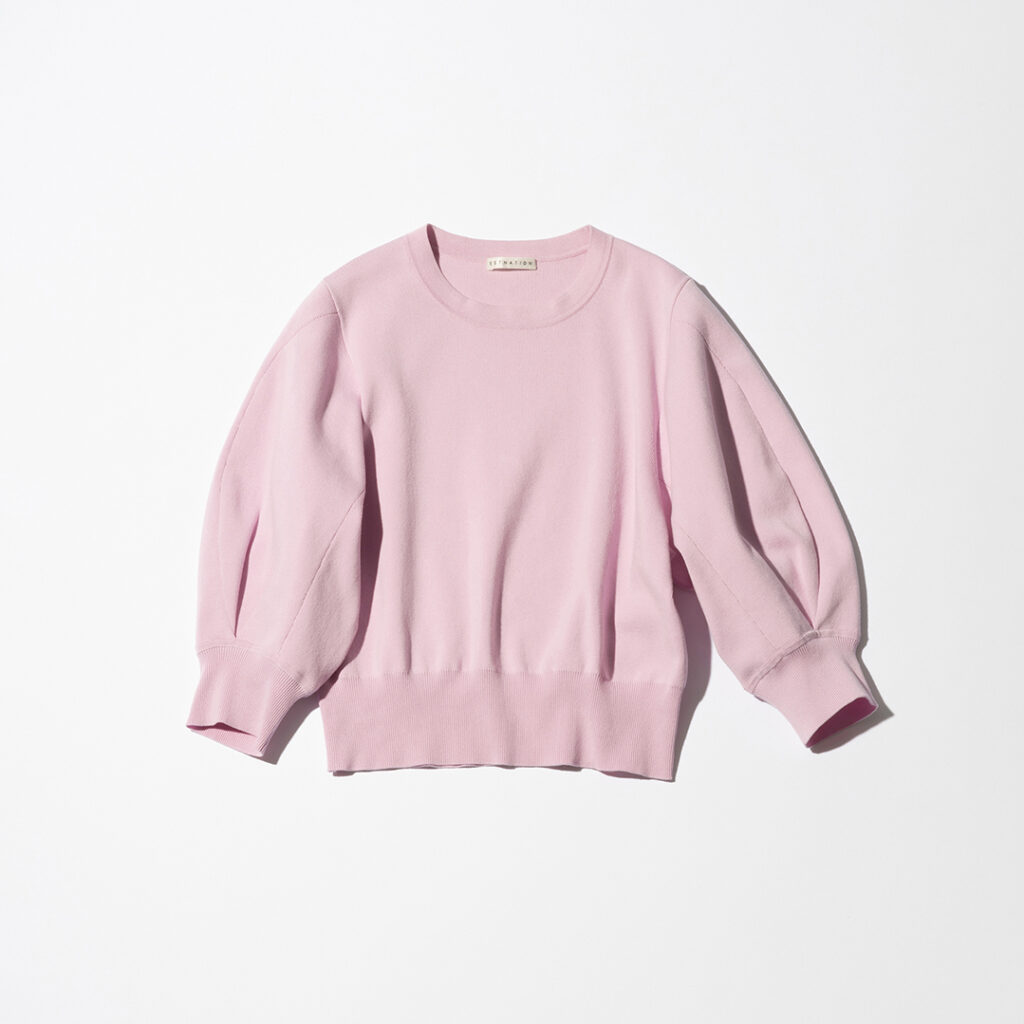 春になると恋しくなるサクラピンク&立体感のあるパフスリで、1枚で着ても華やぐニット。シャリ感のある素材だから、コートやジャケットのインナーにも合わせやすく、ロングシーズン活躍。クルーネックニット¥26,400(ESTNATION/エストネーショングランフロント大阪店)