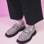 キム・ジョーンズが2024年サマーメンズコレクションのためにデザインした、「ディオール バッファロー」 ローファー。この厚底ローファーは、象徴的な「カナージュ」のグラフィックが落とし込まれたツイード、プレシャスなカボション刺繍で昇華されたもの、そしてキルティングレザーでアクセントが加えられたバージョンなど、様々なデザインでバリエーション豊かに展開されます。トップには「D.I.O.R」の文字があしらわれ、ヒールにはメゾンの歴史へのオマージュとして‟DIOR“のシグネチャーが刻まれています。