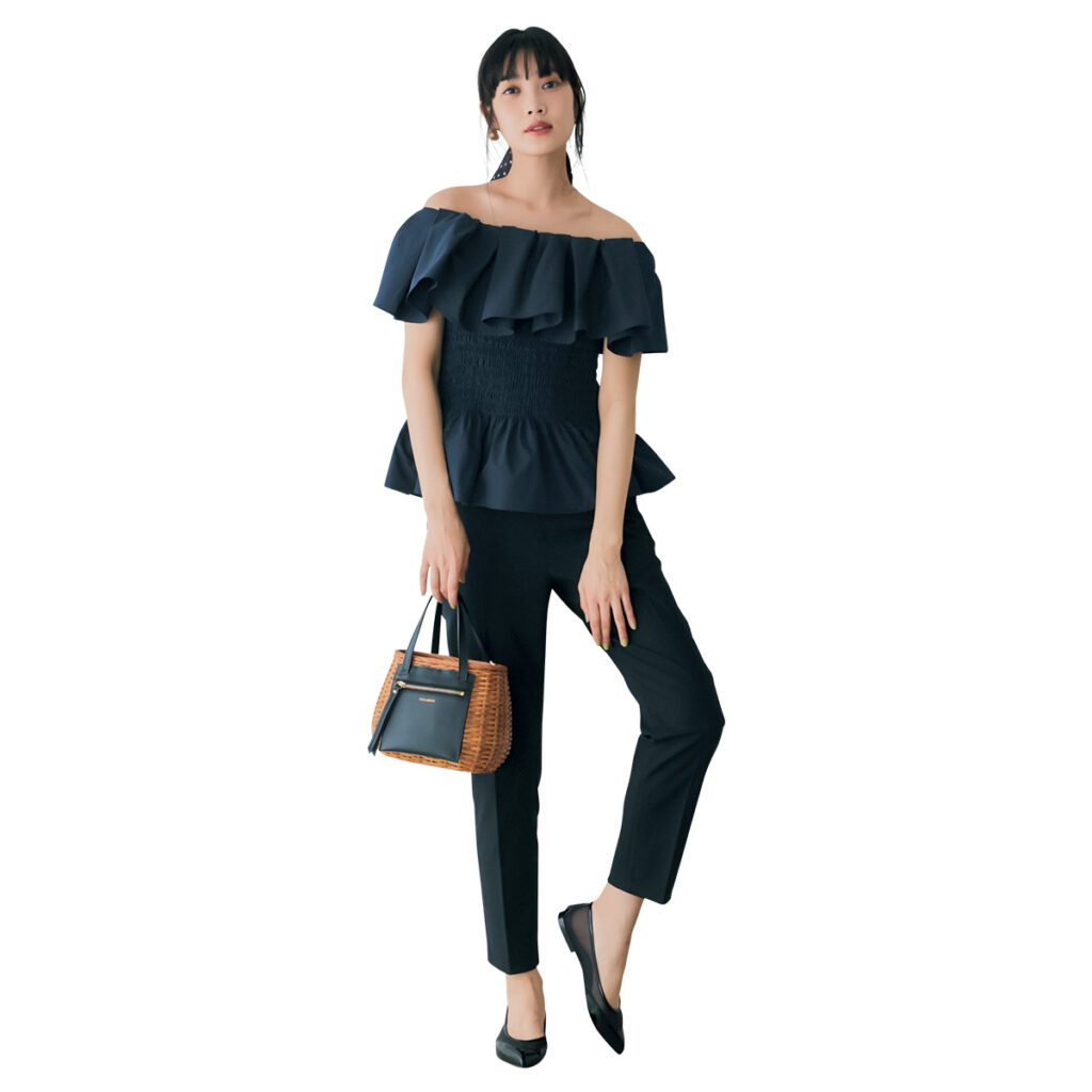 フェミニンな旬のディテールで女っぽくスタイルアップを実現