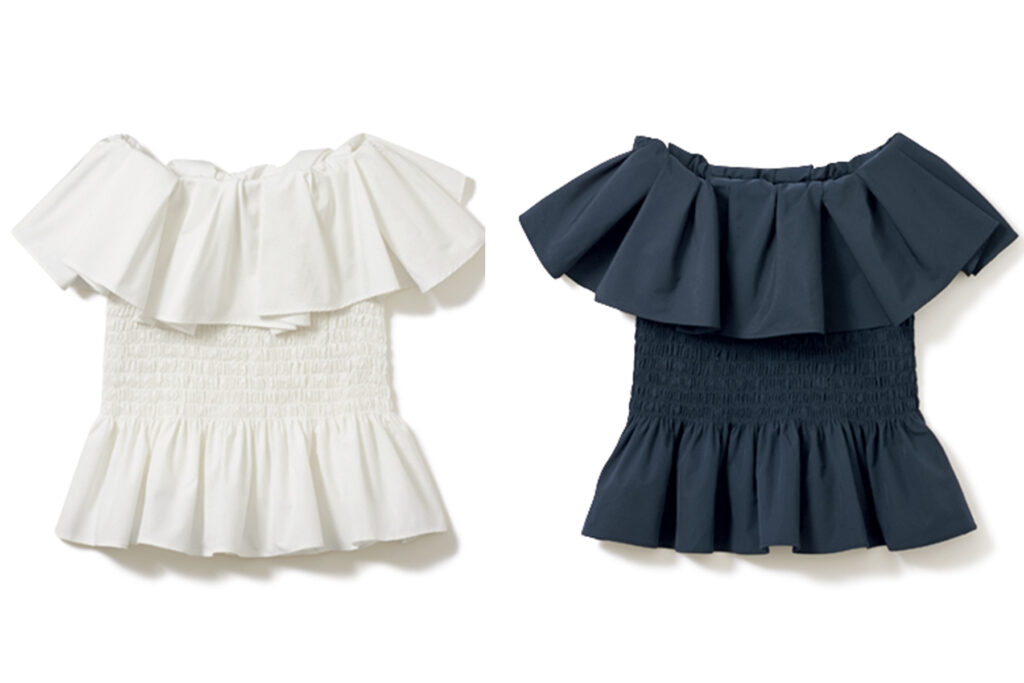 『一枚で決まる新鮮な甘めトップスを作りたくて工夫を凝らした一着。ふんわりとした昨年までのデザインとは違い、カバーしたいところは隠しつつ、メリハリのあるシルエットに。』