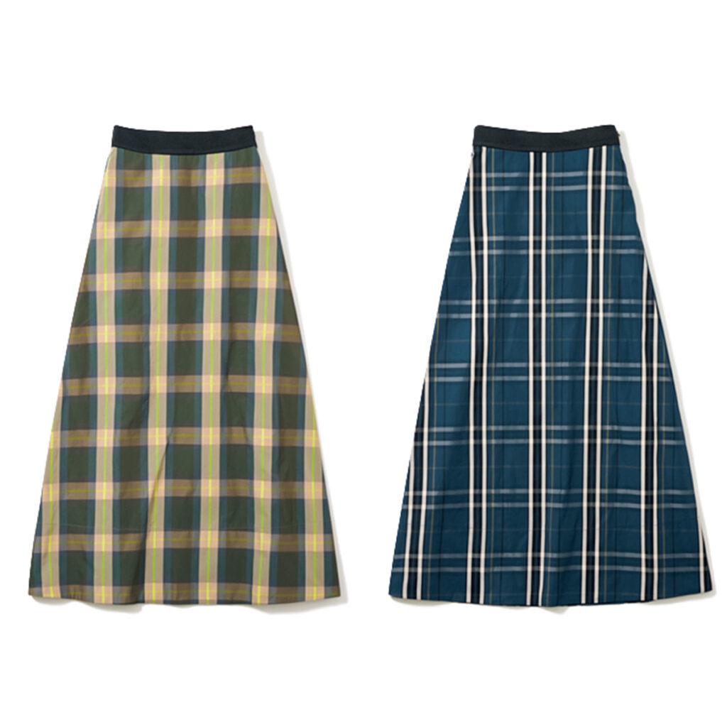 『すっきりとしたシルエットでリッチ見えする、大人のチェックスカートが完成。ひらっとめくれた時にもオシャレ に見える、裾内側に配したコントラストの効いた裏地もこだわりです。』